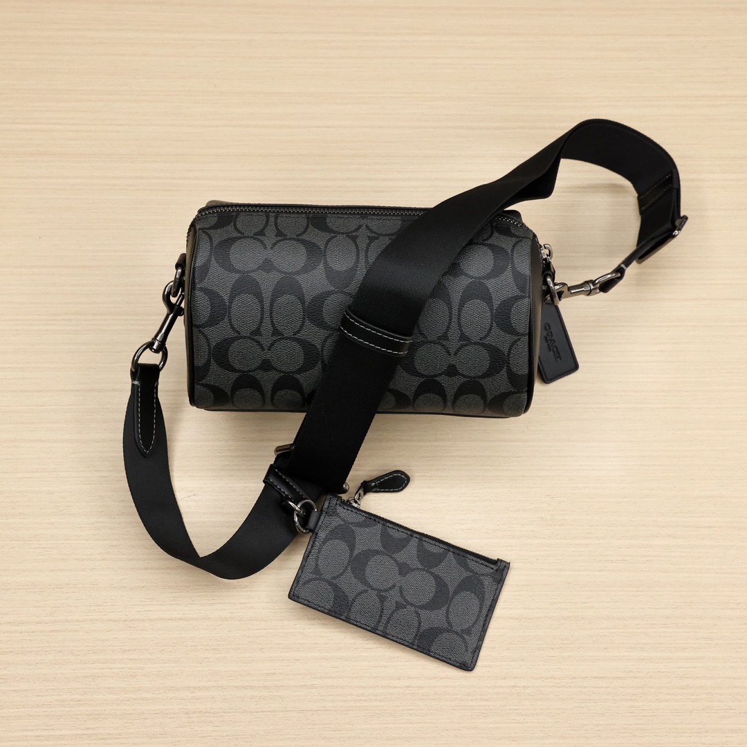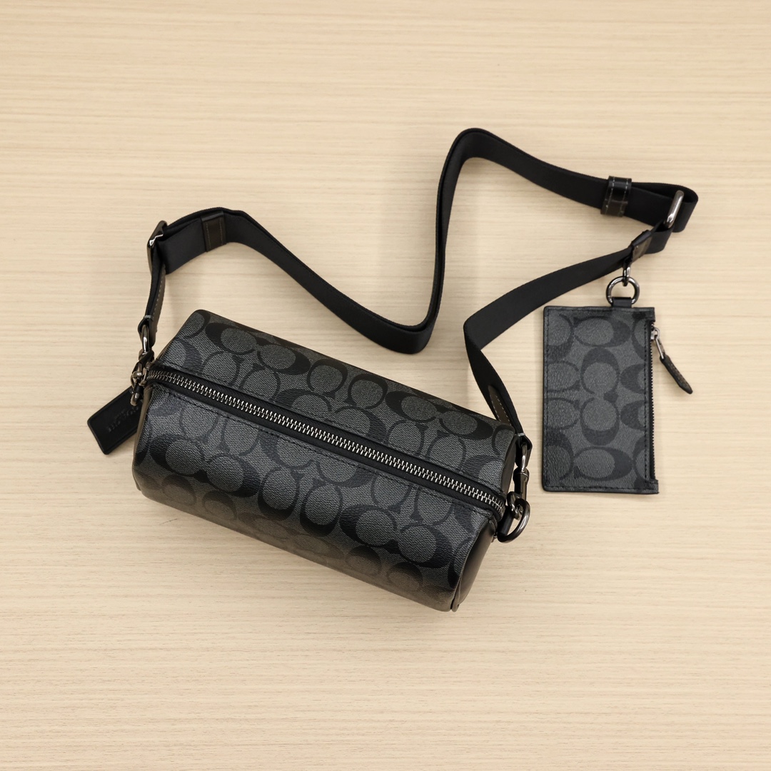 蔻驰新款二合一圆筒包💰260 经典酷帅的石墨色二合一设计,圆桶包型空间大且实用又时尚,搭配小包作为卡包和证件包使用,随便穿搭都很帅气。 规格:21*11.5*10cm