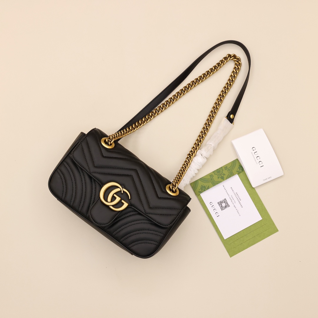 Gucci marmont链条包💰300 高定版 作为古奇宠儿精选手袋的一员,GG marmont系列以其标志性的绗缝皮革和双G字母交织配件而备受推崇,经典材质融入竖版和斜纹圈案,打造别具风情的几何风格设计。 规格:22*13*6cm