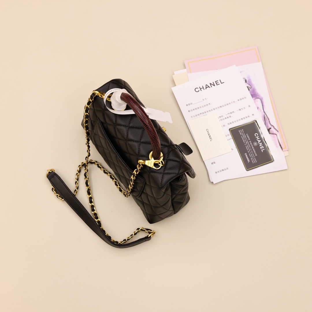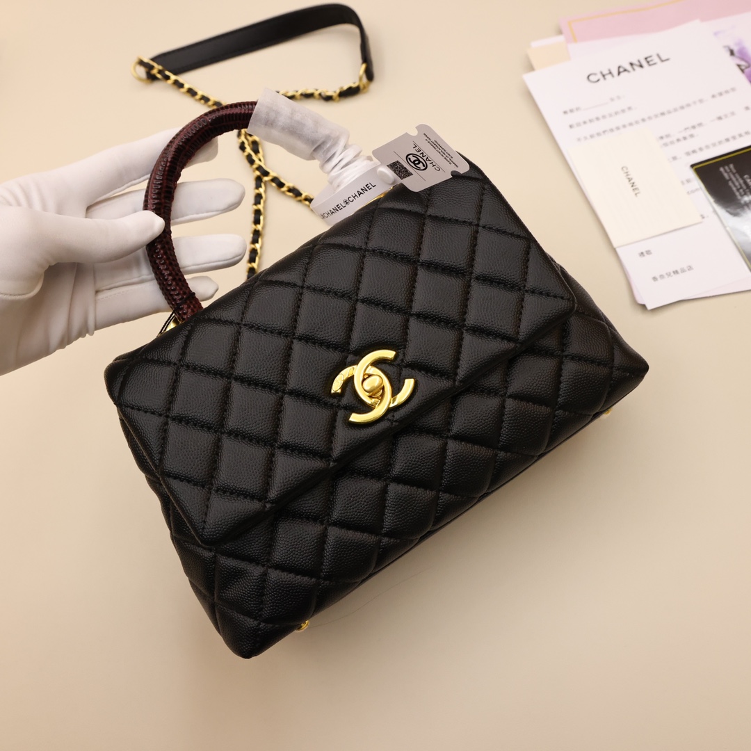 香奈儿Coco Handle手提口盖包💰300 经典让你越看越迷人,款式与皮质相辅相成,蜥蜴皮手腕点缀整体造型提升奢华的视觉,驾驭任何场合都极致优雅。 规格:24*14*10cm