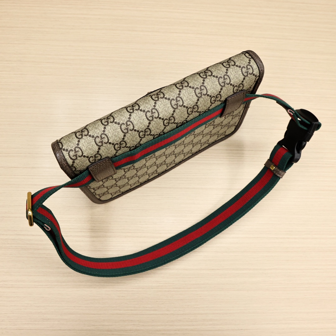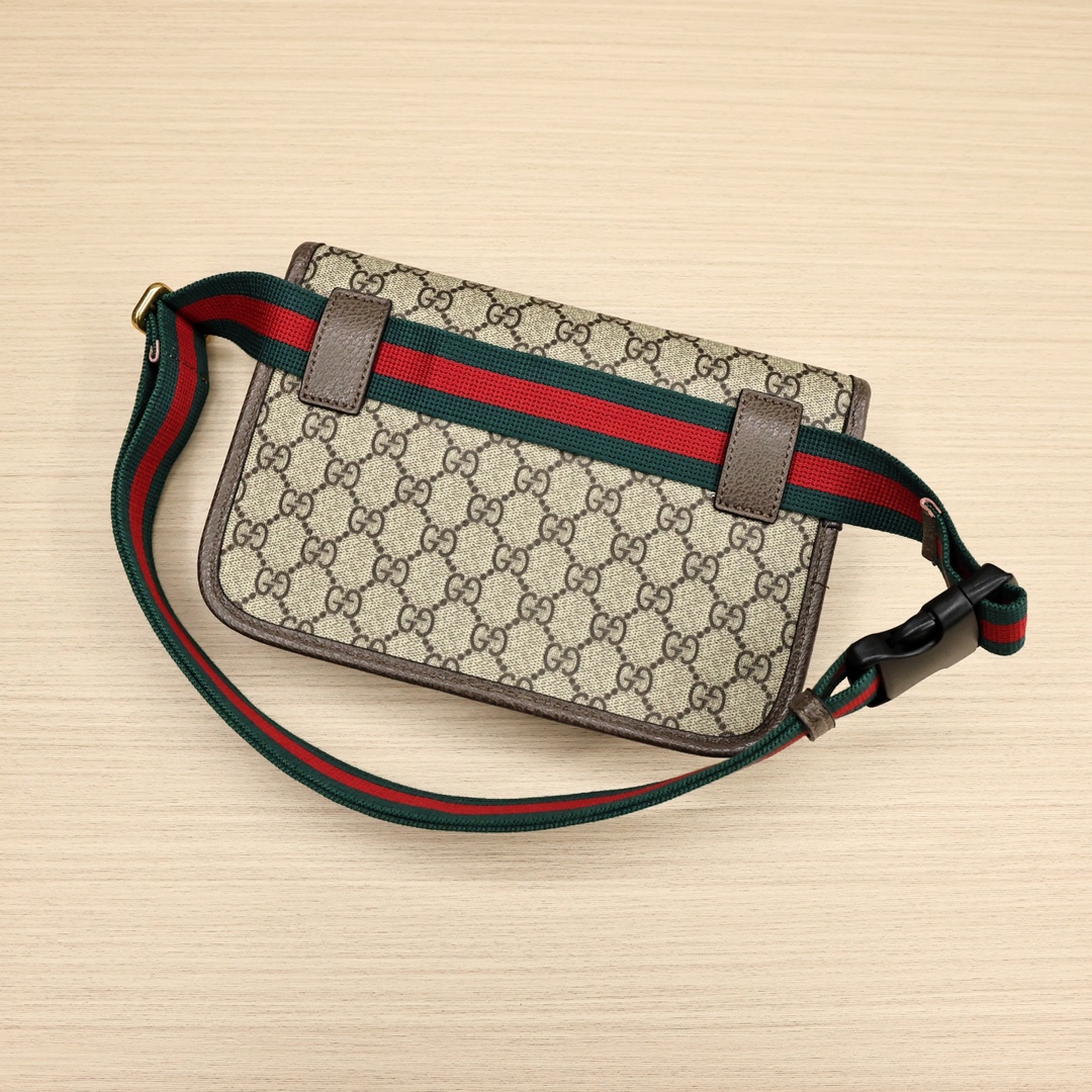 Gucci虎头腰包💰190(情侣款) 采用GG Supreme高级人造帆布制作,配以复古风格设计,款式采用皮革滚边,可以缠腰佩戴,配以织带和搭扣确保安全。 规格: 24*16.5*3.5cm