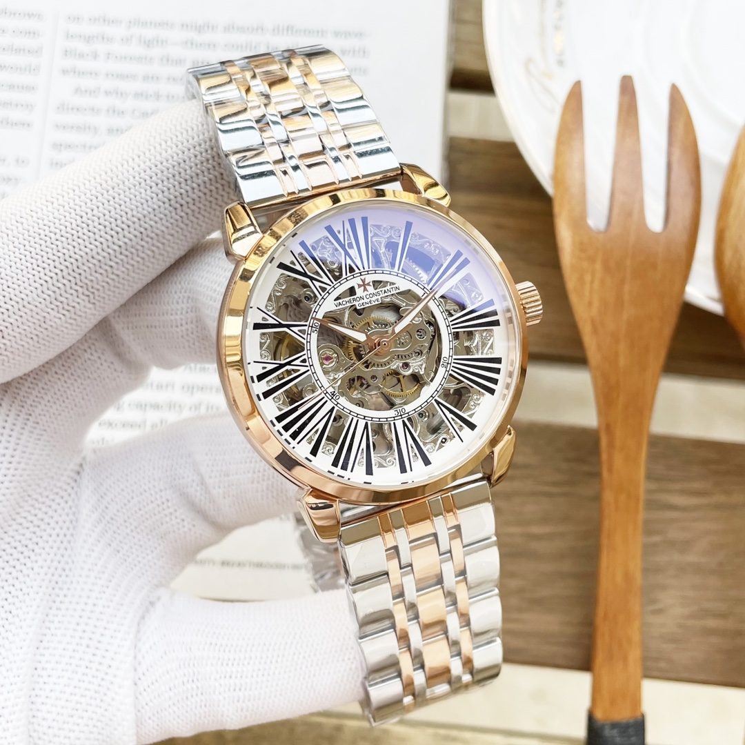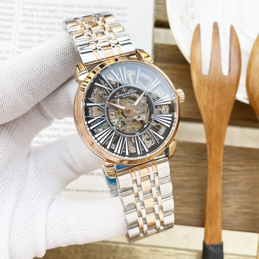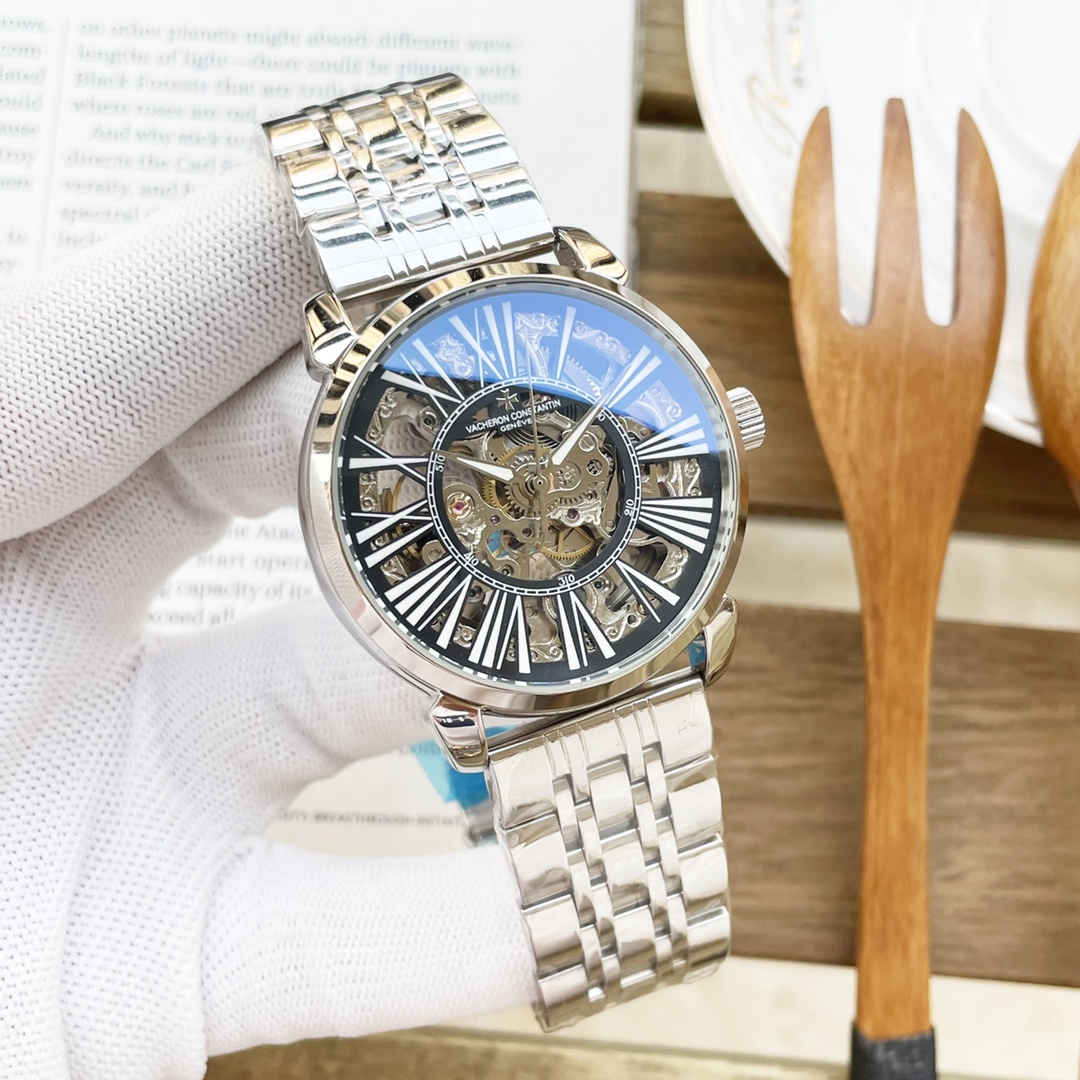 白壳500 玫壳520 钢带+20 江斯丹顿VACHERON CONSTANTIN 精品男士腕表,三针全镂空飞轮设计,技艺精湛,独具匠心,尊贵大气,绅士风范。采用全自动机械机芯,顶级316精钢表壳表带,矿物质超强镜面,尺寸41-13