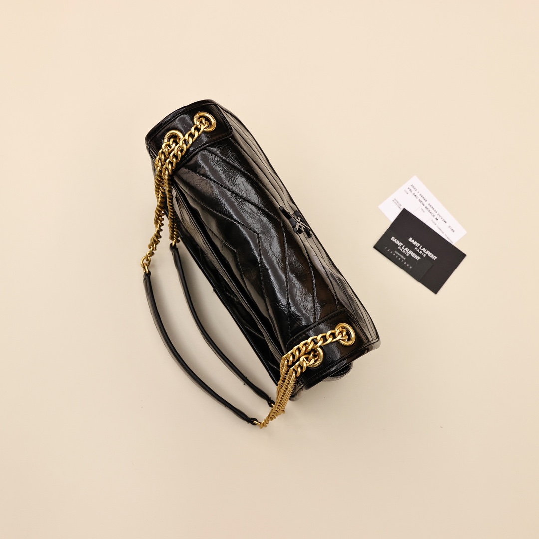 ysl圣罗兰niki邮差包💰260 饰以皮革包覆型YSL字母标志,搭配可转换链条与皮革肩背带和中央隔层,以及背面开放式口袋,非常的方便实用,搭配休闲款或者正式一点的衣服都没问题,这款的经典是人尽皆知,优雅又时尚,高颜又实用,俘获了超多明星博主的心。 规格:28*20*8.5cm