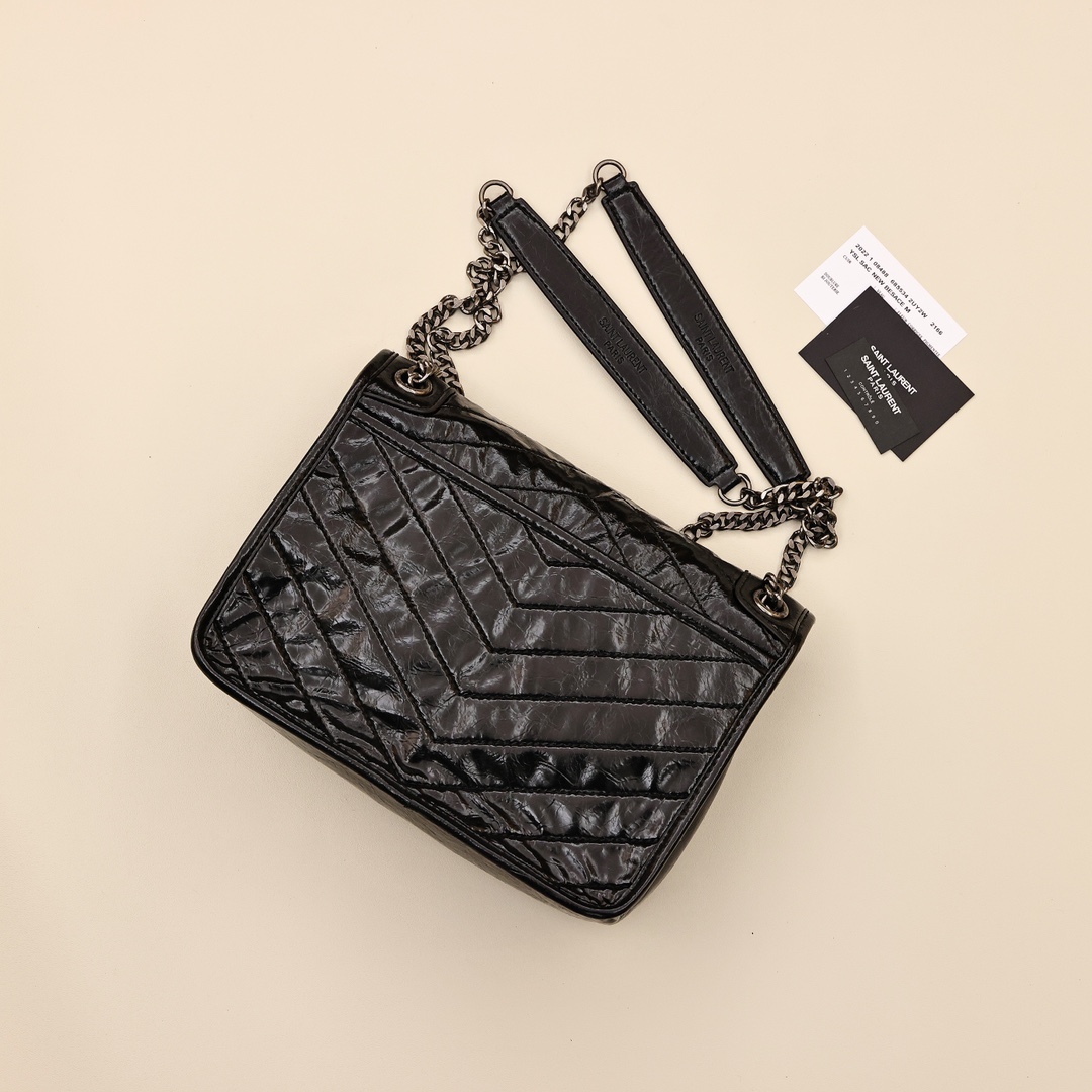 ysl圣罗兰niki邮差包💰260 饰以皮革包覆型YSL字母标志,搭配可转换链条与皮革肩背带和中央隔层,以及背面开放式口袋,非常的方便实用,搭配休闲款或者正式一点的衣服都没问题,这款的经典是人尽皆知,优雅又时尚,高颜又实用,俘获了超多明星博主的心。 规格:28*20*8.5cm