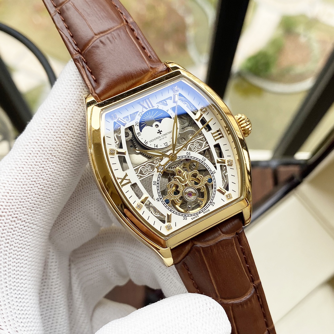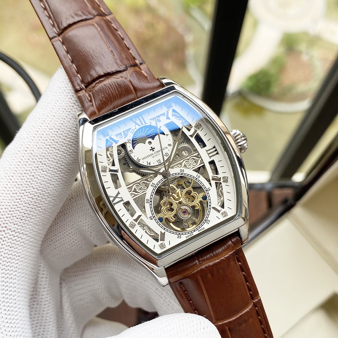 💰统一520。【全新设计 尊贵典雅】江诗丹顿-Vacheron Constsntin 男士腕表 全自动机械机芯 矿物强化玻璃 316L精钢表壳 真皮表带 时尚大方 商务必备 尺寸:直径42mm 厚度12mm