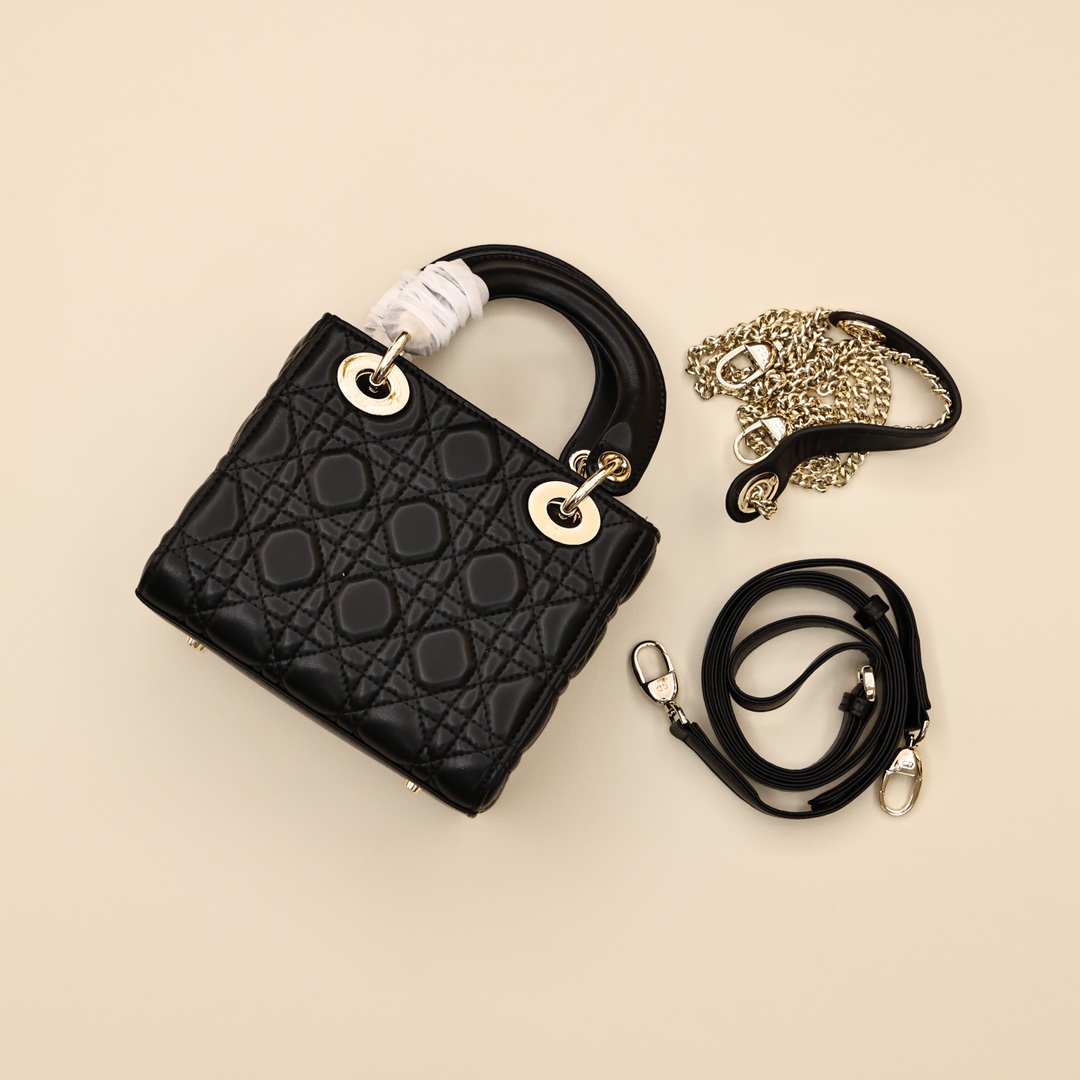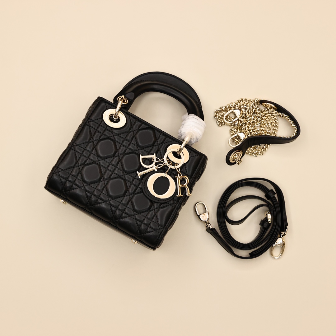 Dior迪奥戴妃包(三格羊皮)💰300 每个女人一生中一定要有一个戴妃包. 规格:17*15*7cm 这款lady手袋体现了对精致和美丽的深刻洞见,采 用磨砂皮精心制作,饰以藤格纹缉面线,标志性版型搭配吊饰提升格调,迷你造型,可收纳各种小件随身物品,是晚装造型的理想良伴。