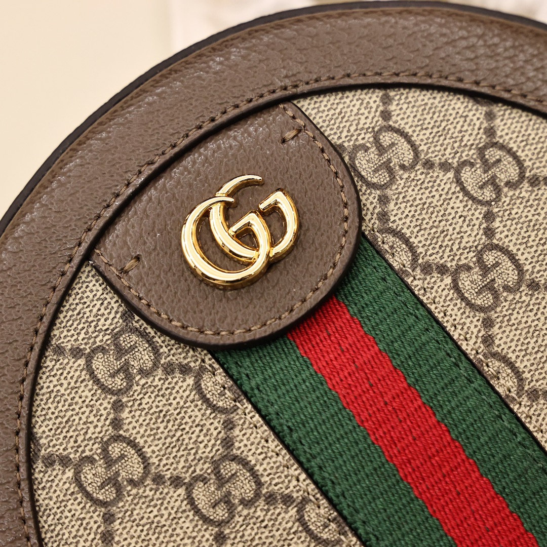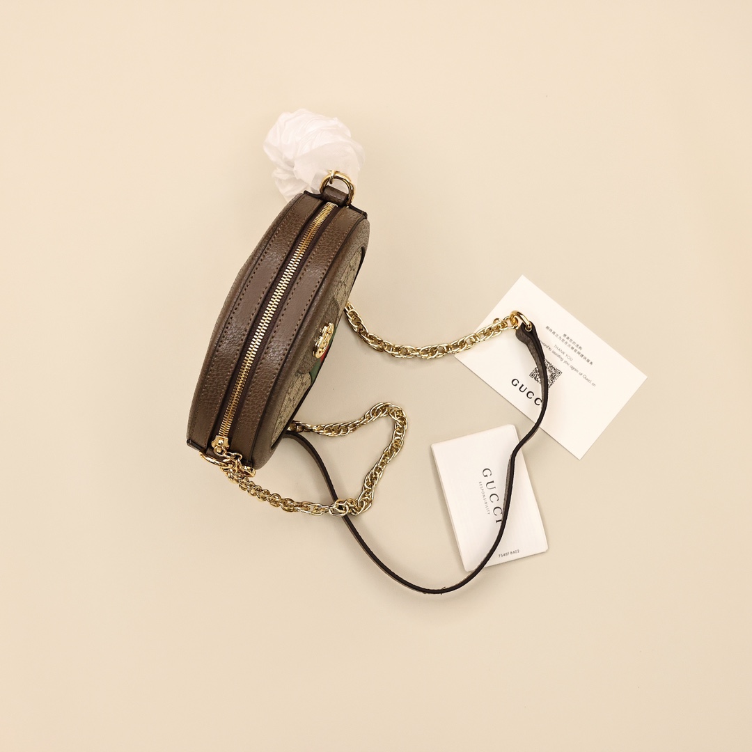 Gucci ophidia圆饼包💰210 采用GG Supreme高级人造帆布制作,镶嵌红绿条纹织带,小巧玲珑的双G图案是源自70年代的Gucci典藏设计,整个包都是满满的复古风。 规格:18*18*4.5cm