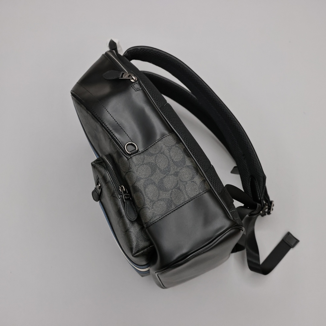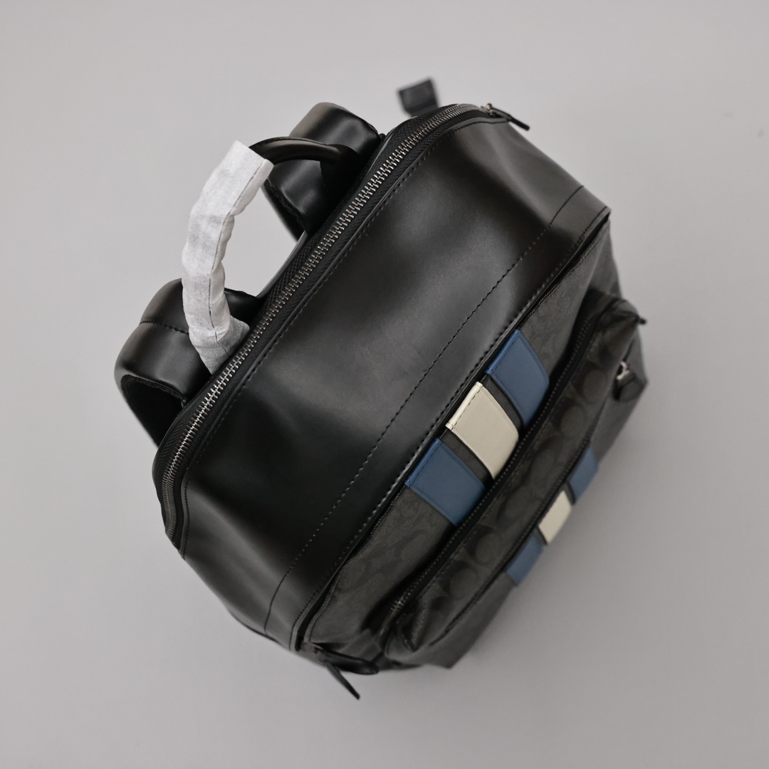 蔻驰男士双肩包💰370 顶级原单 此款双肩包织物内衬,天然牛皮饰边,黑色金属配件,拉链内袋,配有外袋,便于取物,钩眼扣抽绳开合牢靠安全,配有舒适的皮质背带与顶部手柄,便于手提与肩背。 规格:44*35*15cm