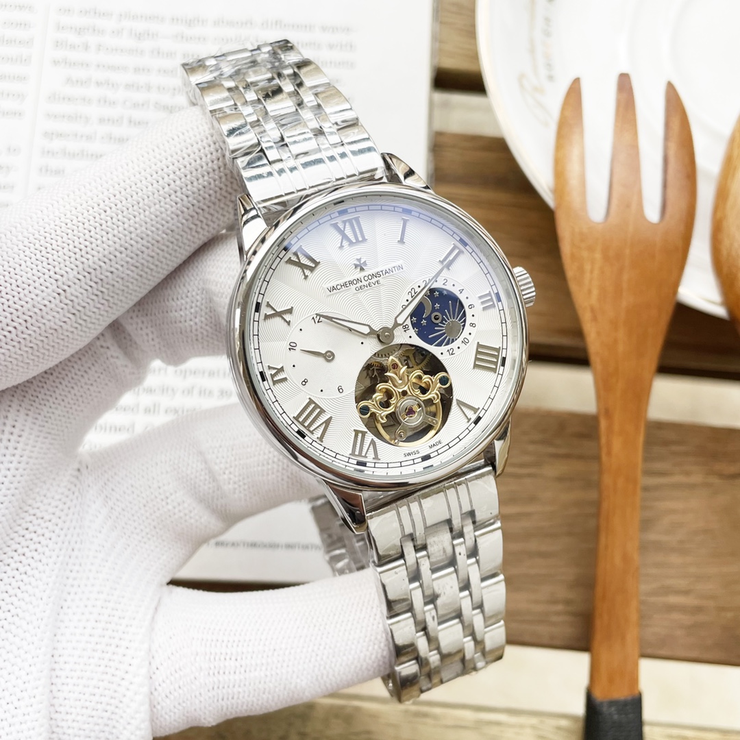 白壳480 玫壳500 钢带+20 江斯丹顿VACHERON CONSTANTIN 精品男士腕表,大飞轮月像设计,技艺精湛,独具匠心,尊贵大气,绅士风范。自动机械机芯,顶级316精钢表壳表带,矿物质超强镜面,尺寸41-13