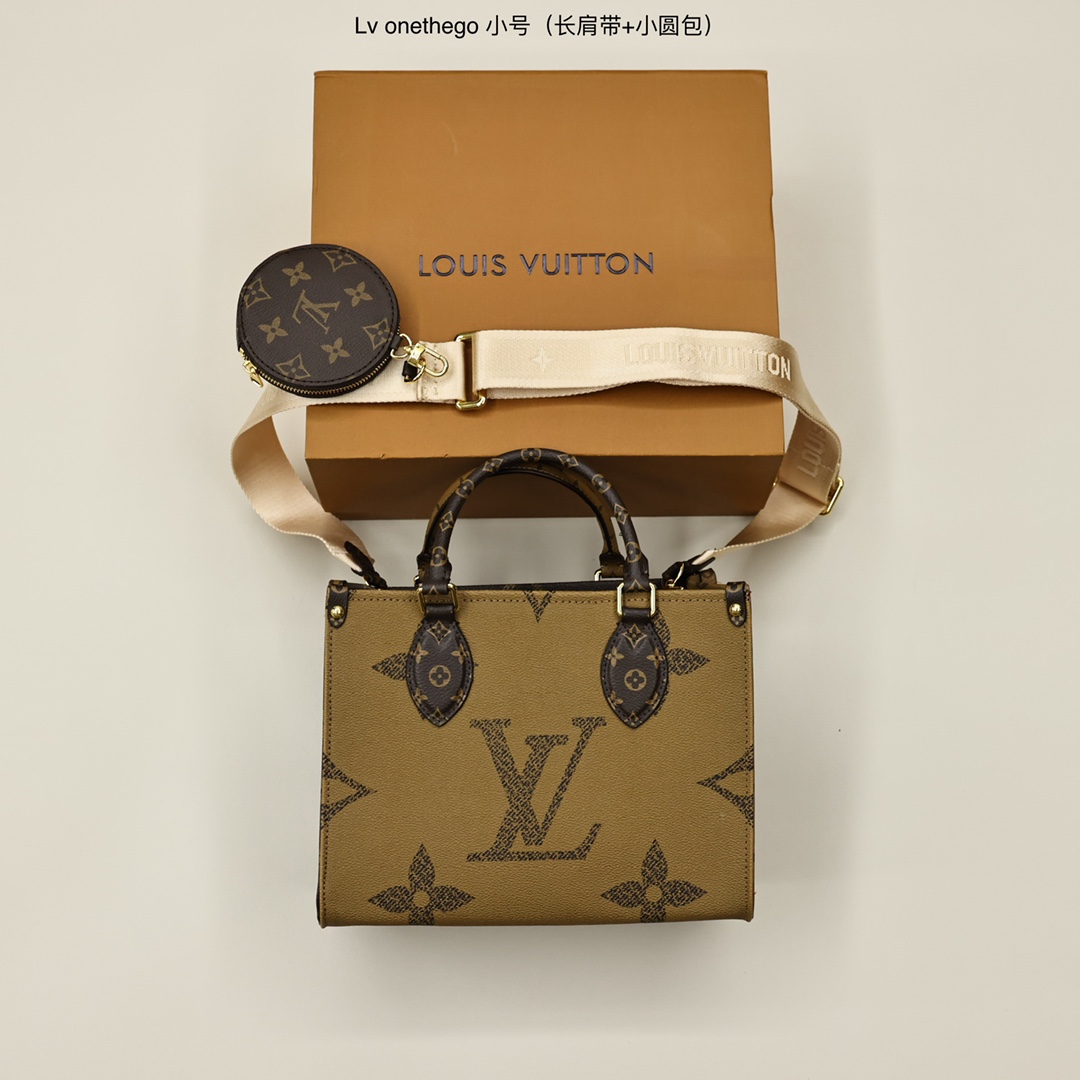 Lv on the go小号💰310 国内2.10才首发,是近几年最流行的宽肩带,外加一个零钱包,不仅减龄增加了几分俏皮的少女感,使用起来也是有很多背法,可手拎也可以斜跨或者是单肩,包包容量可以装下 ipad。 规格:25*19*11.5cm