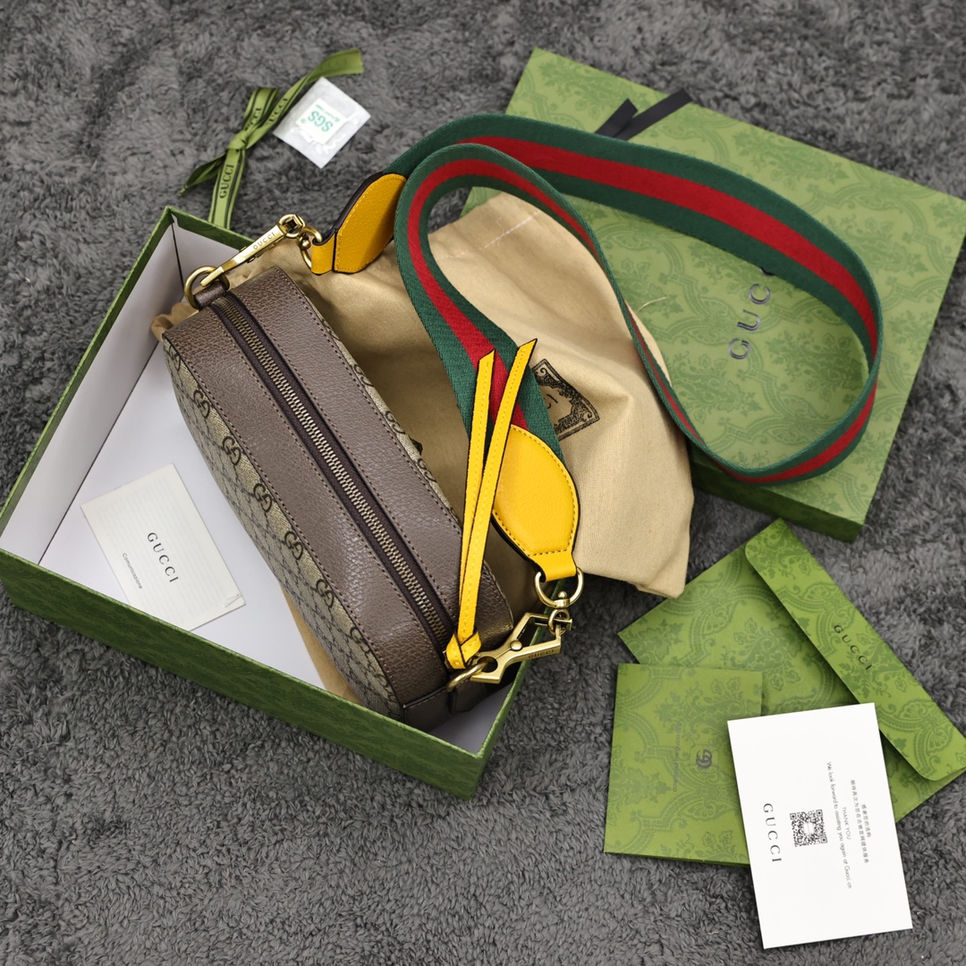 GUCCI虎头相机包💰240 这款vintage相机包有着浓烈的复古风格,以乌木色拼亮黄色设计,配色真心好看,饰以精致小虎头五金,标志性的彩色肩带和古铜鱼嘴扣,配棉麻碎花里衬,每个细节都是设计师的用心之作,看似简单却不失质感。 规格:24*15*7.5cm