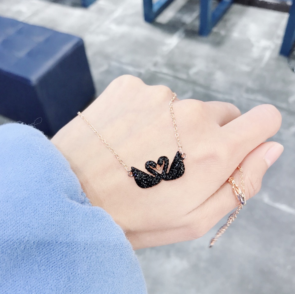 批💰90 施华洛世奇Swarovski,江疏影同款SWAN双黑天鹅 亲嘴鹅 相亲相爱 双天鹅,精致迷人的镀玫瑰金色项链,附带全套专包柜装。