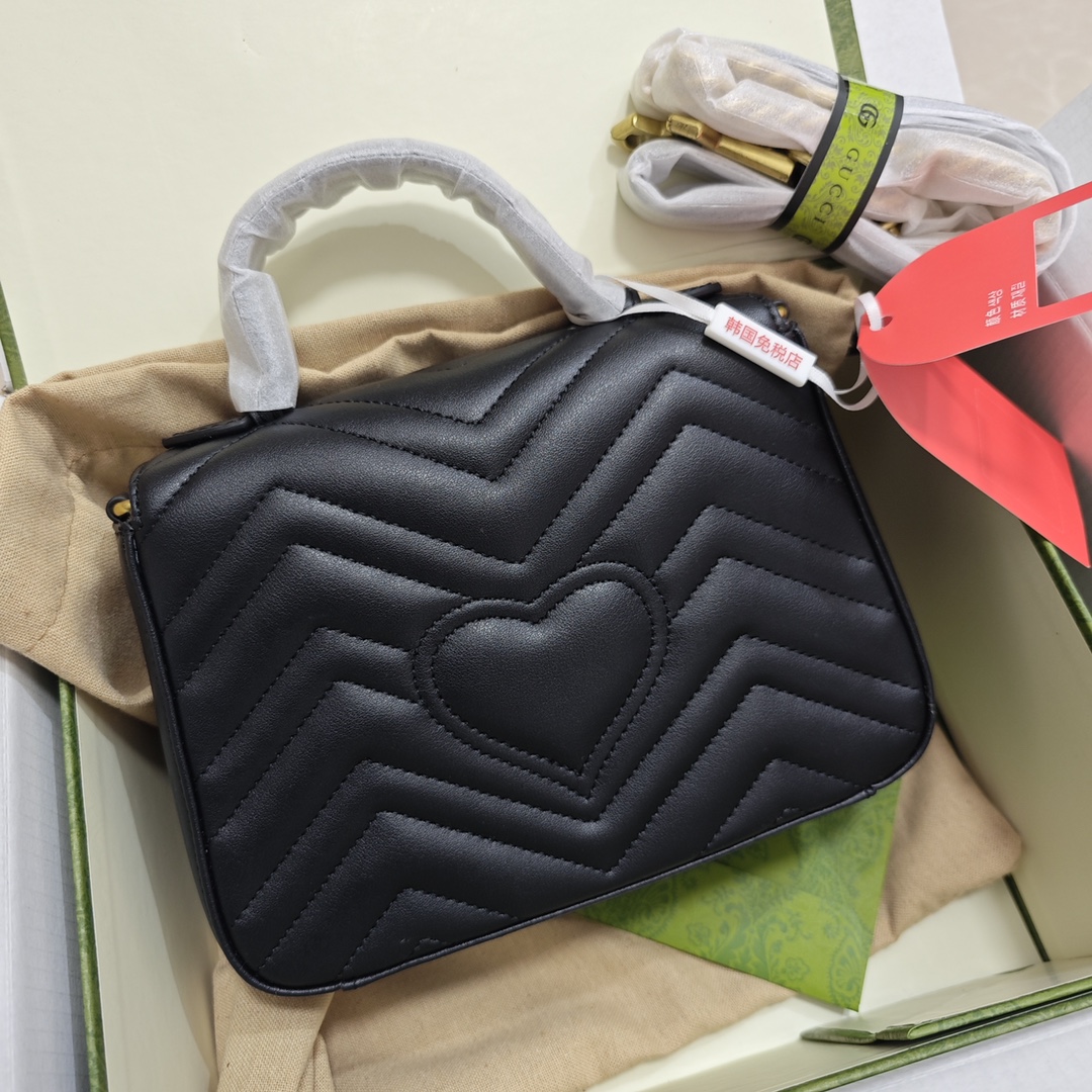GUCCI marmont 邮差包💰280 它的流行一直从未停止过,没有比它更好 看的邮差包了,双G街缝迷你手提单肩斜挎链条包,经典双G标志,背面爱心设计,让整个包添了一些少女的可爱气息,手提设计,让你拥有不同的背法! 规格:21*15*8cm 精致包装