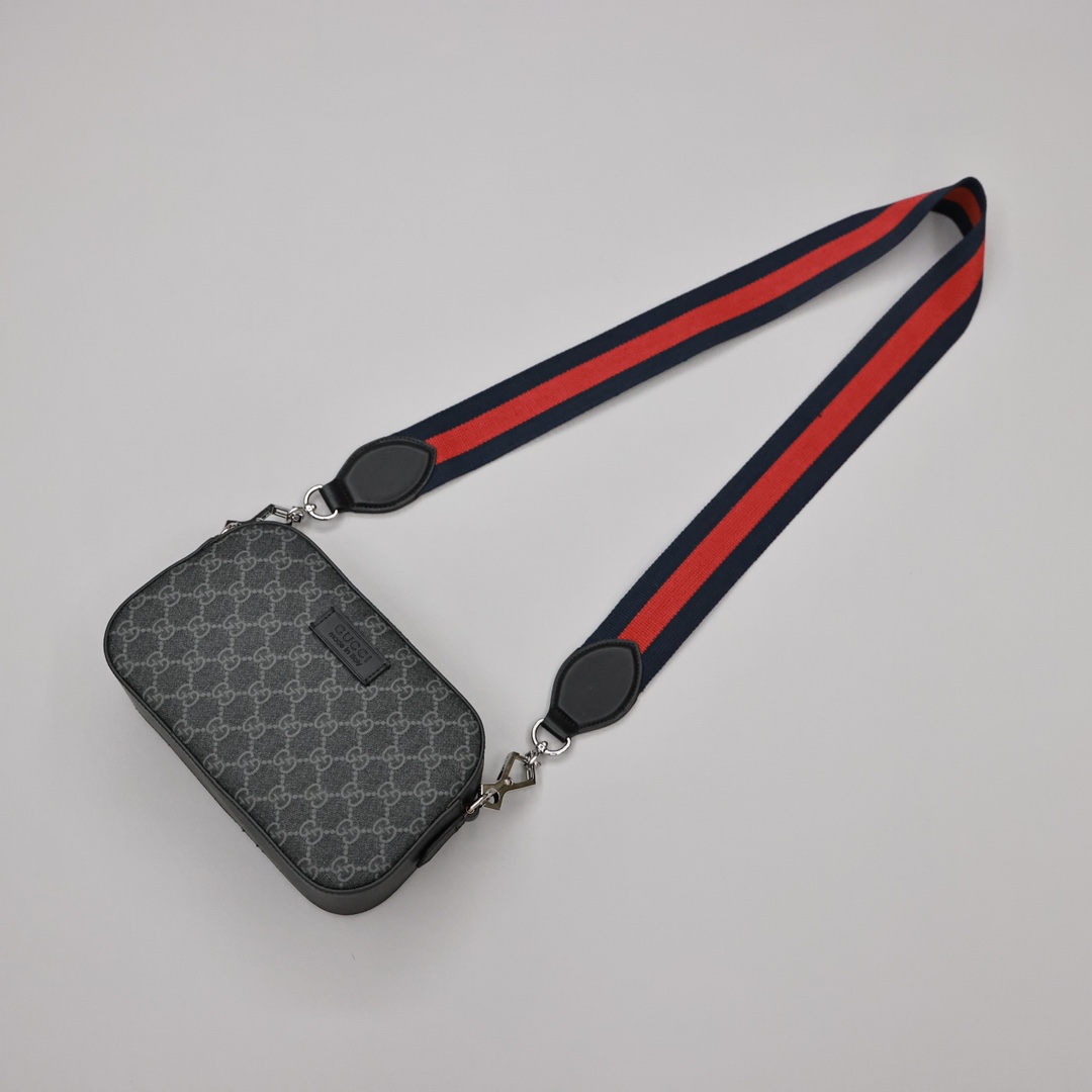 GUCCI相机包💰230 运用略挺括的长方形造型,结合GG Supreme帆布材质,令人情不自禁想起传统的相机包,宽版红蓝尼龙条纹织带,与匠心呈现的黑灰色品牌标志图案相得益彰,打造出众的肩背包造型。 规格:24*14*7cm