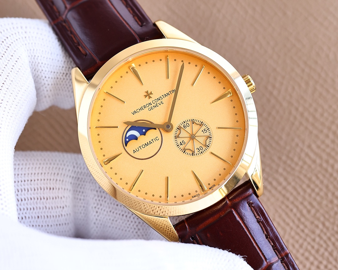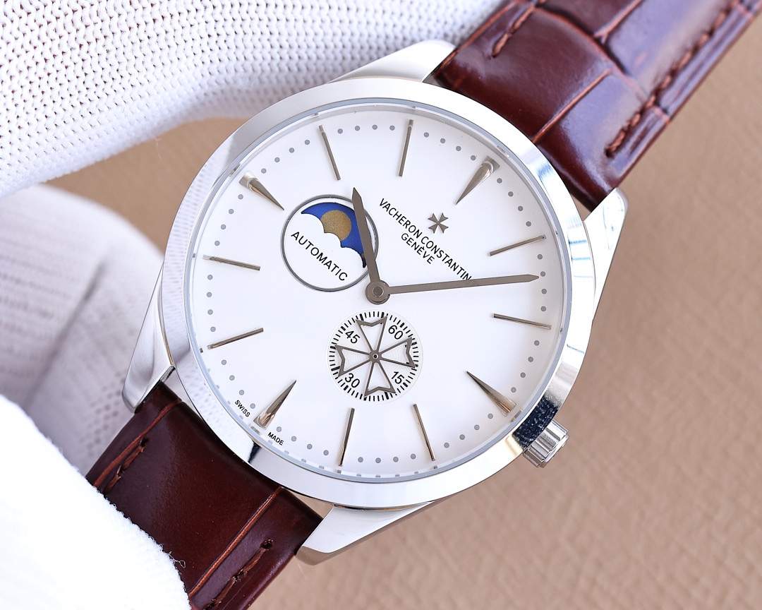 金白同价:550江诗丹顿 -Vacheron Constantin最新力荐,搭载定制版原装进口82s7机芯,9位日月星辰显示,5位独有四叶草小秒设计。储存动力超48小时。 【表壳】:316精钢(做工优质),顶级CNC切割工艺力求壳型完美 【表带】:意大利进口牛皮表带 【机芯】:进口82s7全自动机械机芯(走时稳定) 【玻璃】:高级强化镀膜镜面 【尺寸】:直径40mm,厚度12mm
