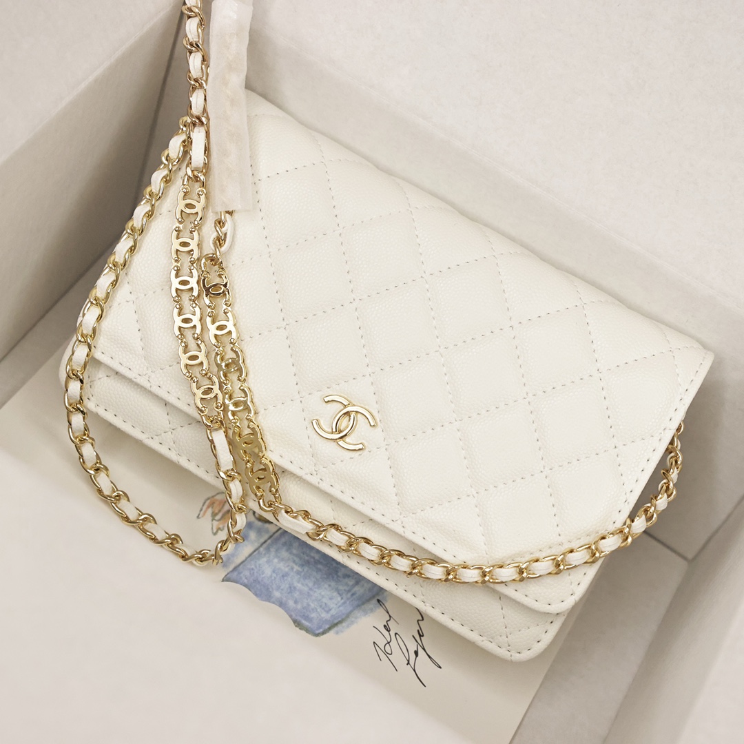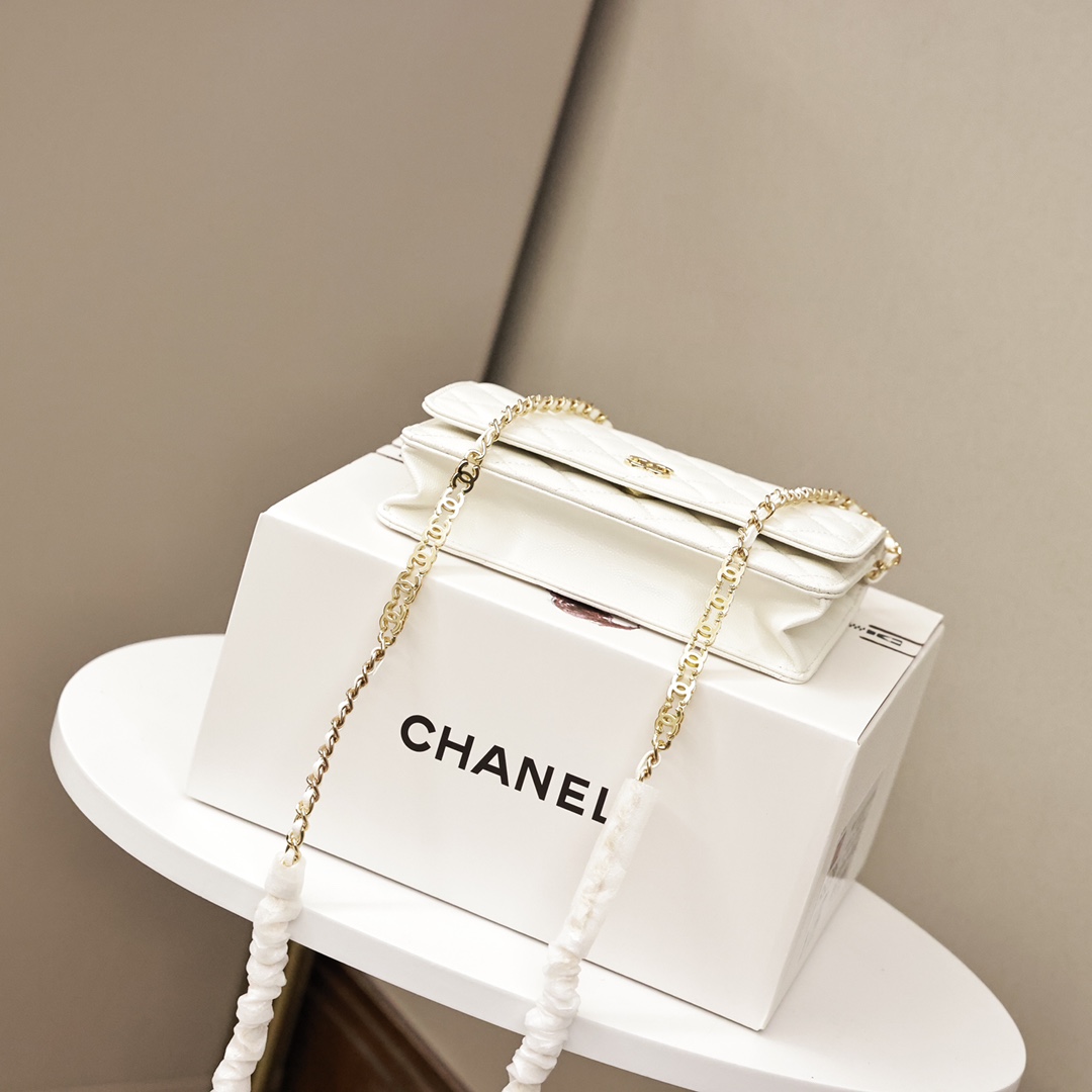 香奈儿22s新款woc发财包💰220 Chanel全新woc,俗称“发财包”所有女人最喜欢的一个搭配,链条是最惊艳的地方,有三段金属的双c logo真的超好看,内置卡槽,四季常青款,百搭实用,出门方便,颜值感和实用度爆棚,时尚小仙女最爱! 规格:19*12*8cm