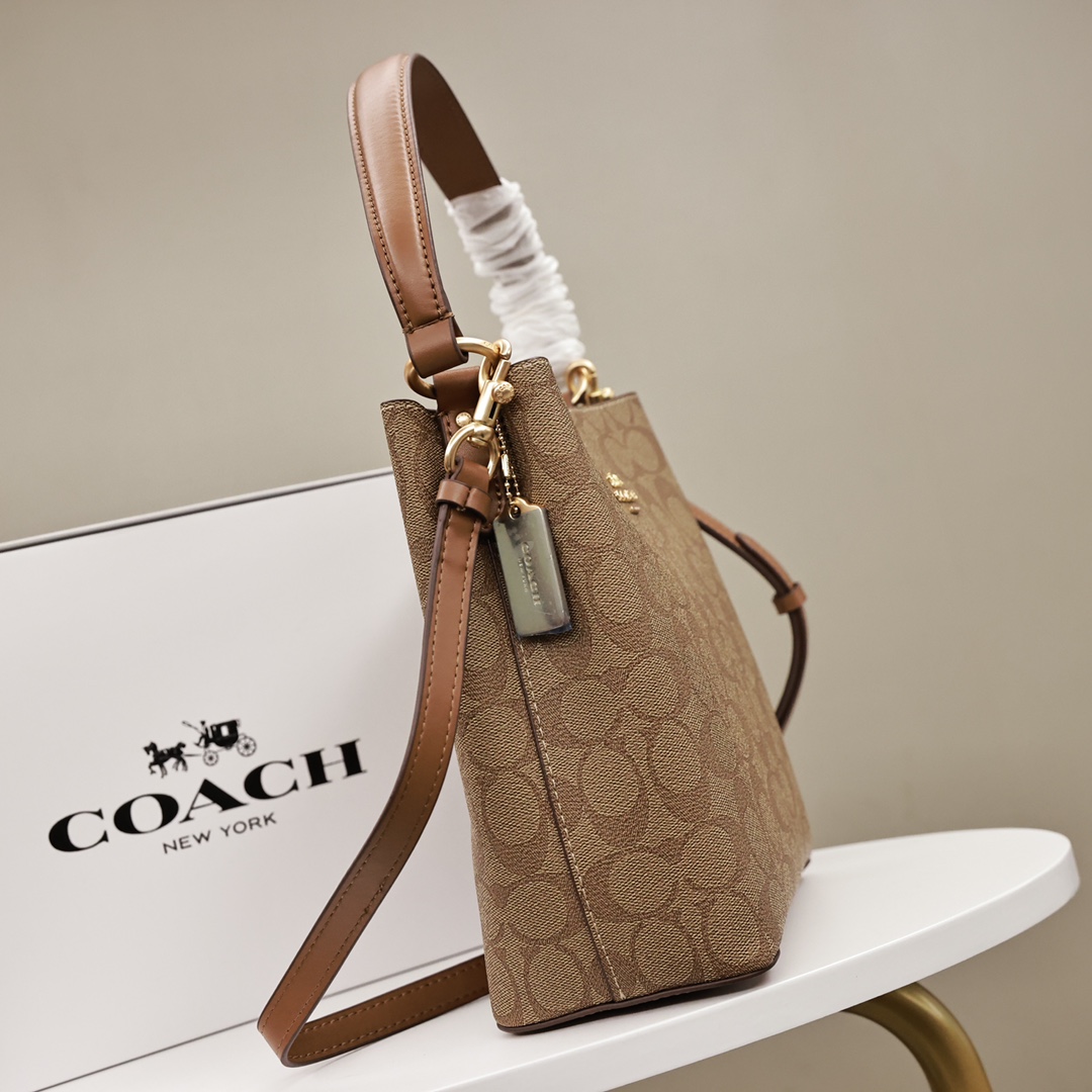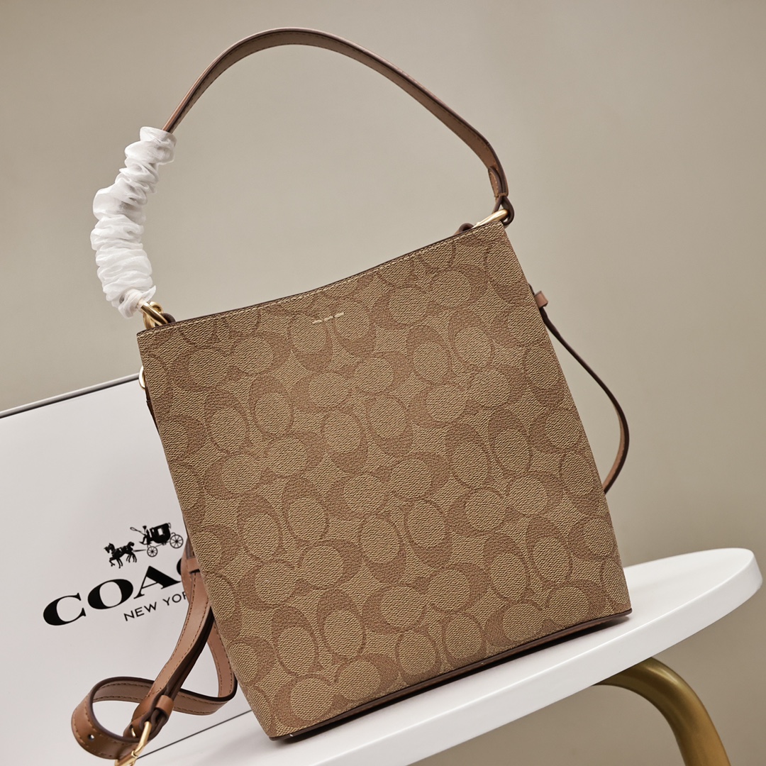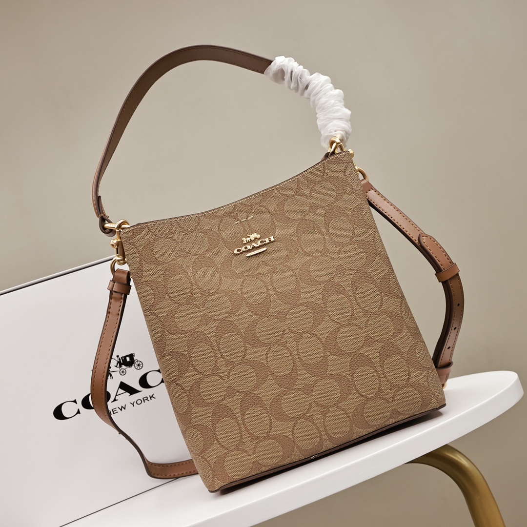 蔻驰Town水桶包💰220 原单. 轻巧能装很实用. 长短两条肩带.可手提可斜挎. 包包中间还有拉链隔层.容纳性也好.最经典的logo配色.非常大气百搭. 规格:22*20cm