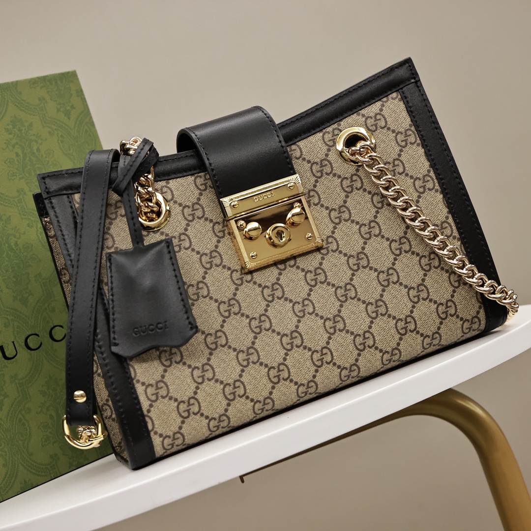 GUCCI padlock链条包💰320 采用GG Supreme帆布精心打造.这款是小号.容量非常合理.也是绝对够用的.适合日常使用.老花+padlock元素让整个包经典又时尚.休闲正式场合上班通勤都可以.一点都不重.皮肩带背起来更舒适.推荐款! 规格:26*18*10cm