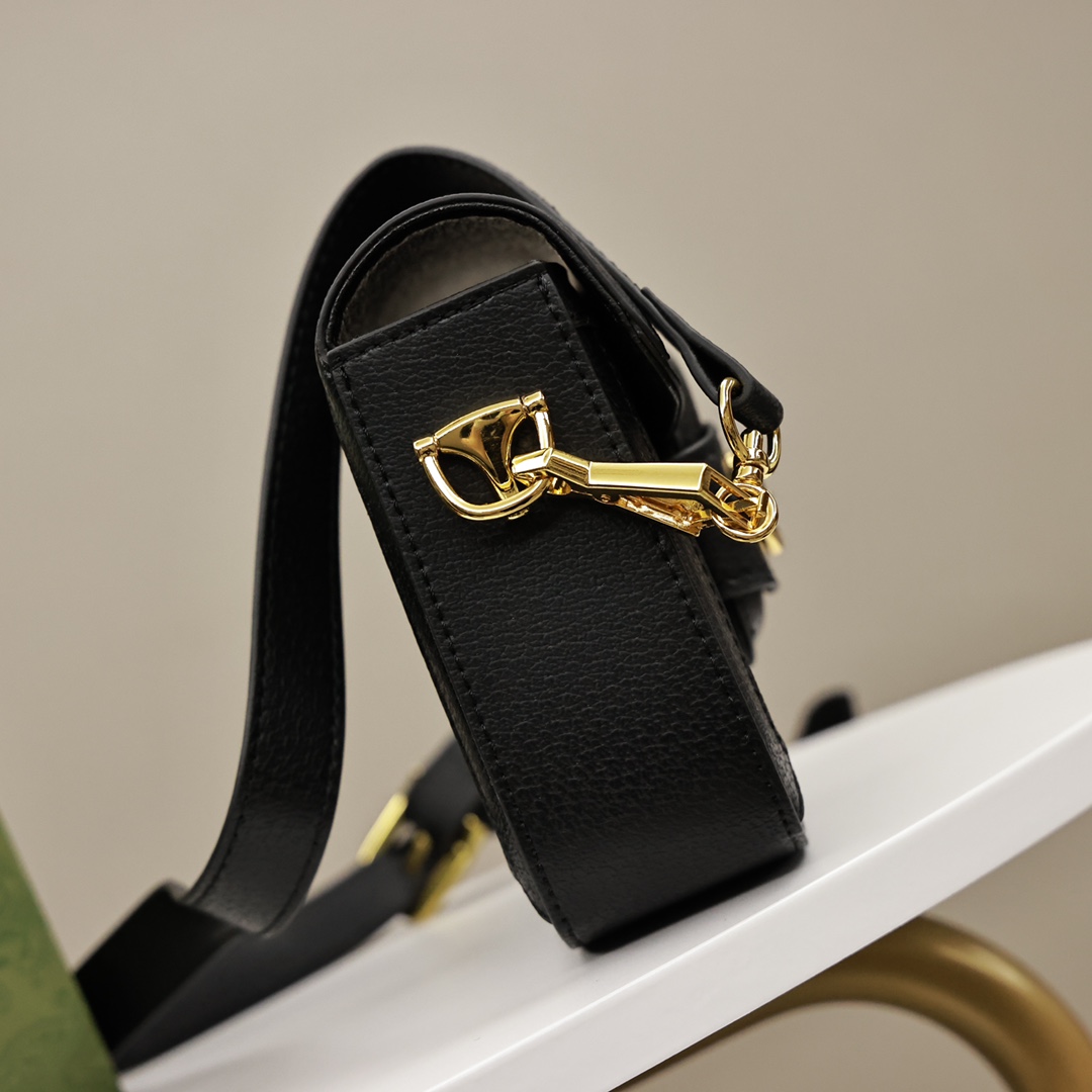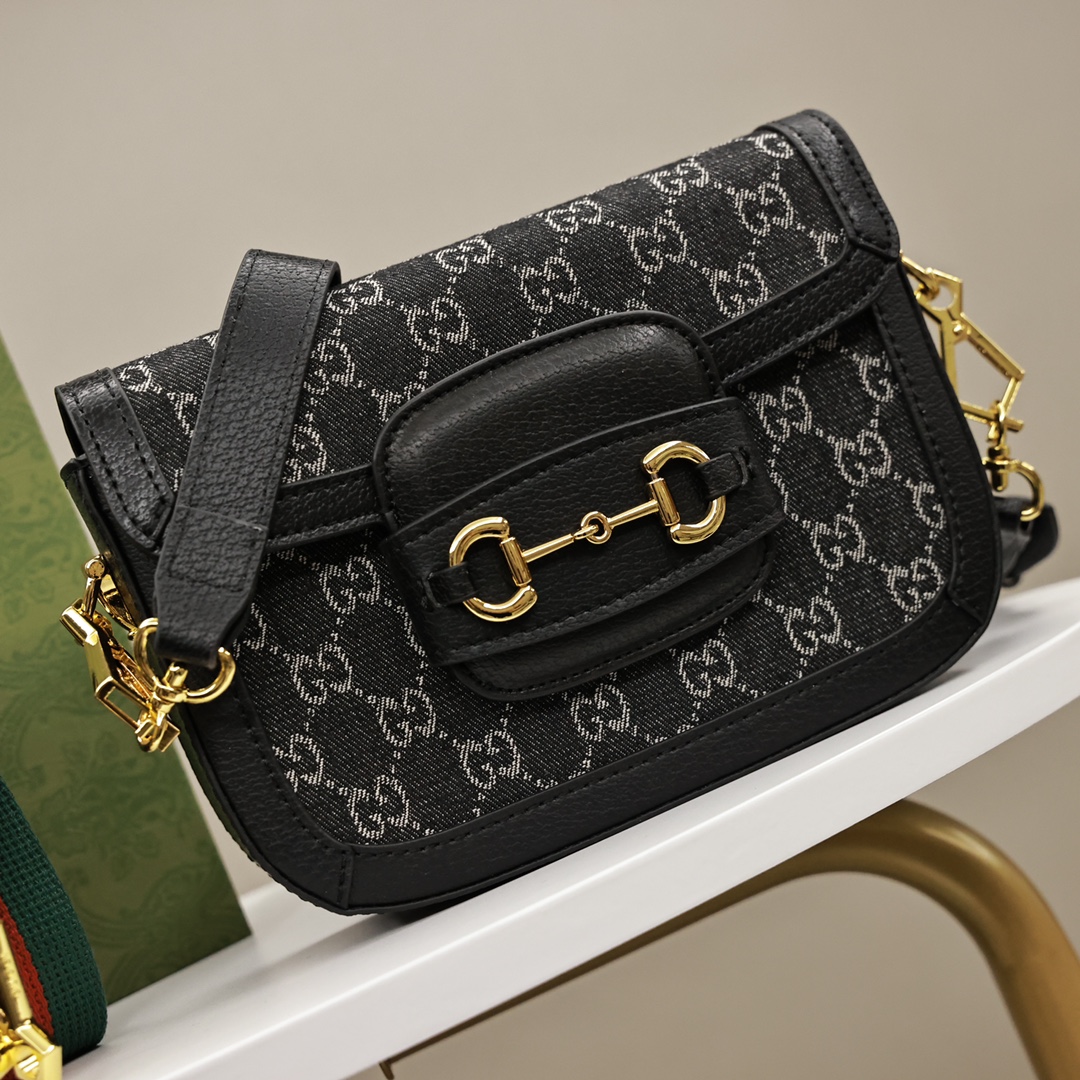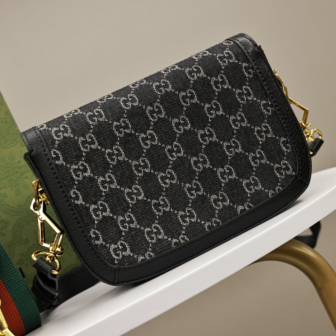 Gucci新品黑丹宁马鞍包💰300(迷你) 为这一复古风格系列增添了混搭格调.这款迷你手袋配有两根不同的肩带.搭配同色调皮革肩带可呈现出低调优雅的气息.搭配红绿织带肩带则突显强大的品牌标识内涵.手袋采用双G字母交织图案帆布制作.饰以黑色皮革滚边. 规格:20.5*14.5*5.5 cm