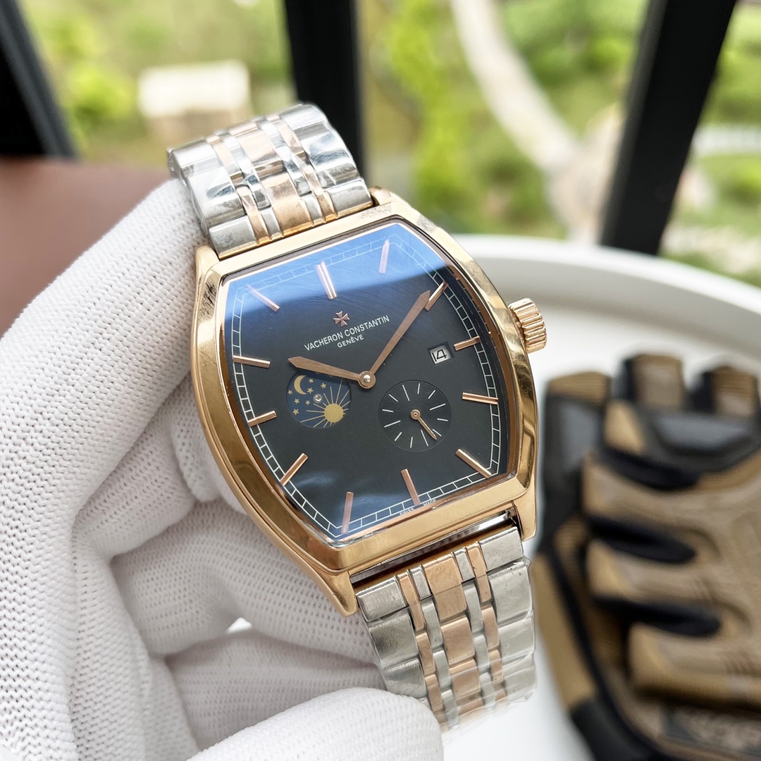 💰420 品牌:江诗丹顿 -Vacheron Constantin⚡️ 类型:男士腕表 表壳:316精钢(做工优质) 表带:进口真牛皮 机芯:高级定制全自动机械机芯(走时稳定) 玻璃:高级强化镀膜镜面 尺寸:直径41mm,厚度12.5mm