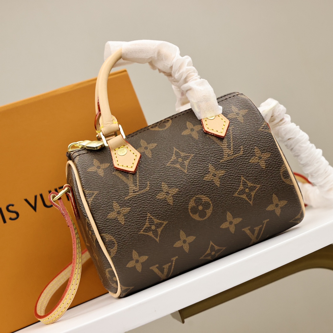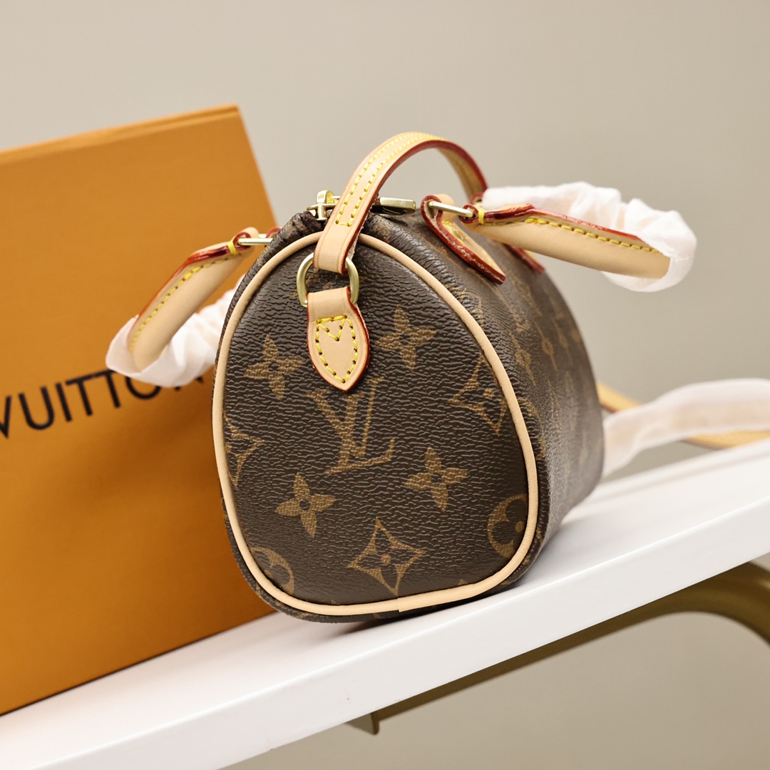 LV Nano迷你枕头包💰190 原厂青铜五金.标志性的Monogram涂层配置欧洲定制.原始完美的微型Speedy袋迷你版.缝线精致.轻盈无比.上身效果超棒. 规格:16*12*10cm 折叠礼盒装.