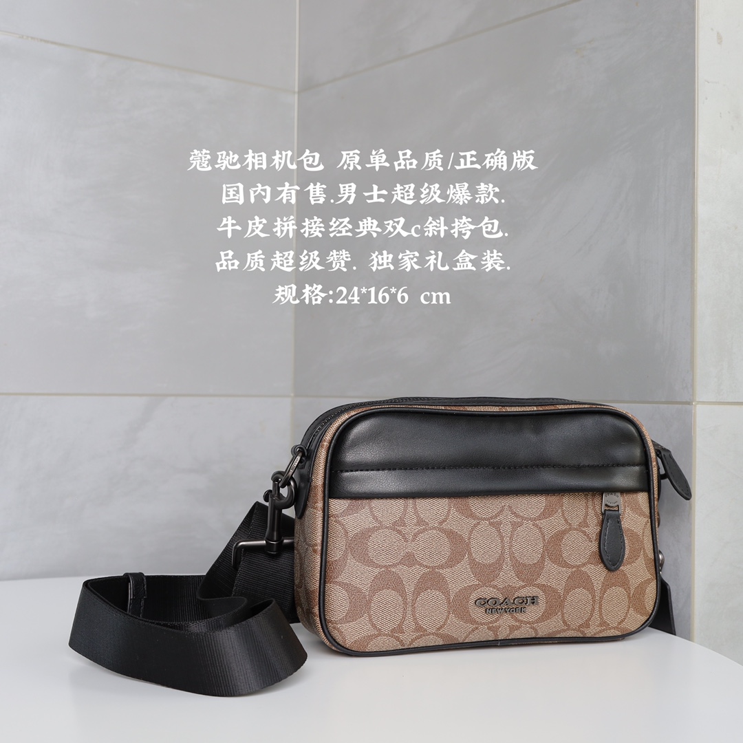 蔻驰相机包💰190 原单品质/正确版 国内有售.男士超级爆款. 牛皮拼接经典双c斜挎包. 品质超级赞. 独家礼盒装. 规格:24*16*6 cm