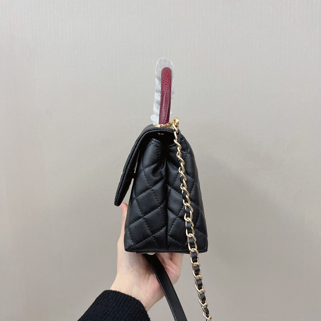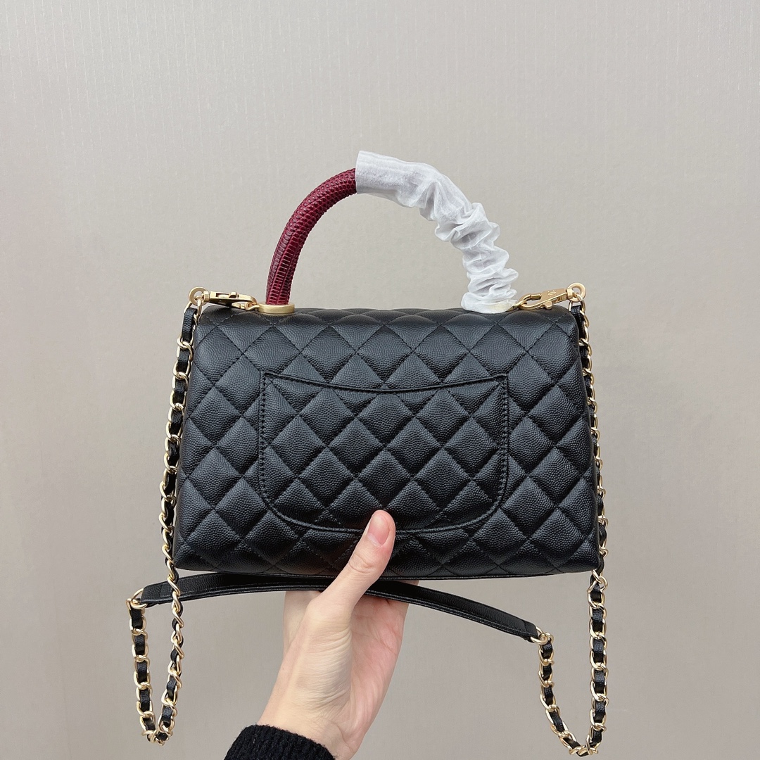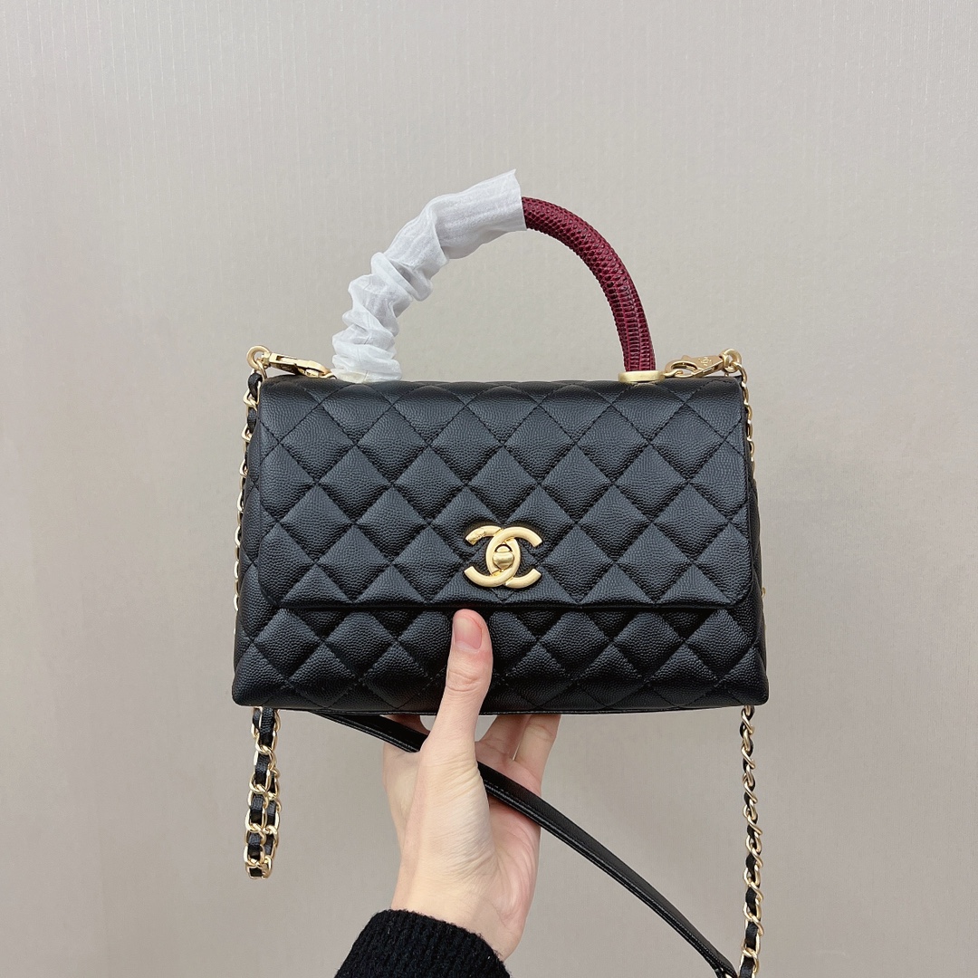 香奈儿Coco Handle手提口盖包💰280 HASS 御用鱼子酱材质.定制五金扣.励泰手缝定制.蜥蜴皮手腕.全皮材质有质感.多个隔层口袋设计.人生短短几个秋.不买小香不罢休. 规格:24*14*10cm 礼盒装.
