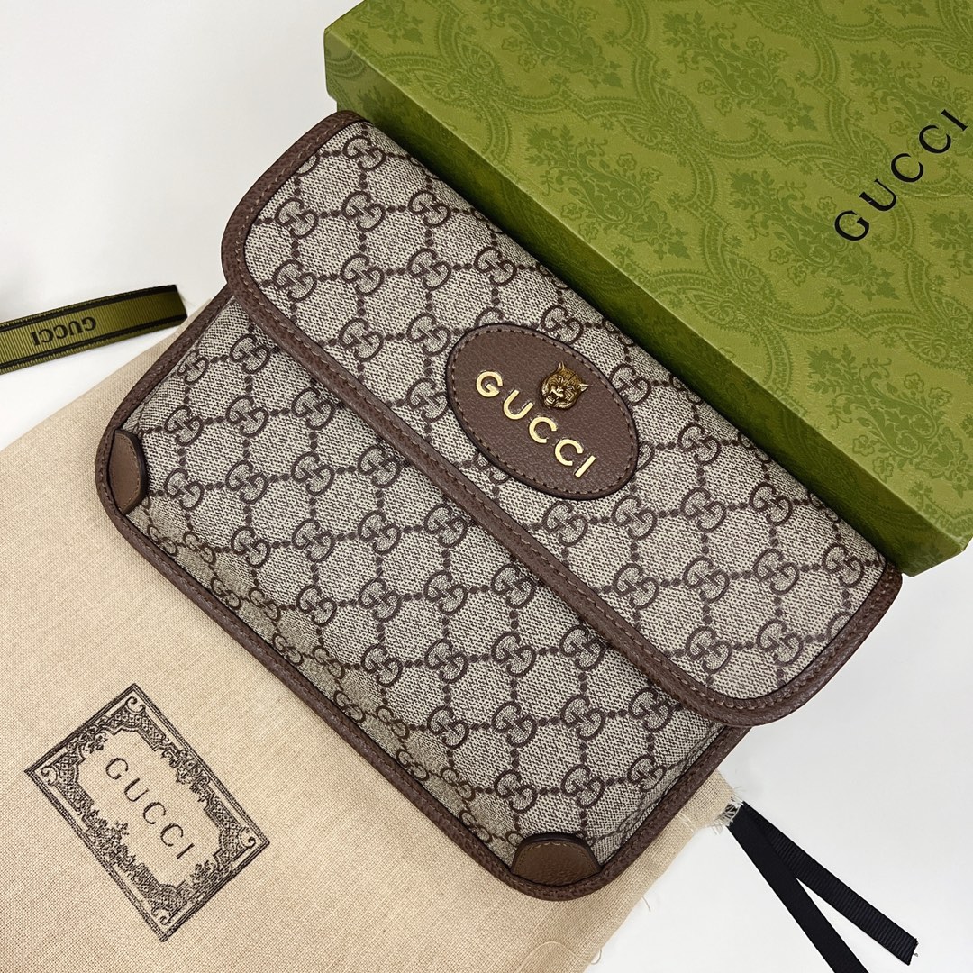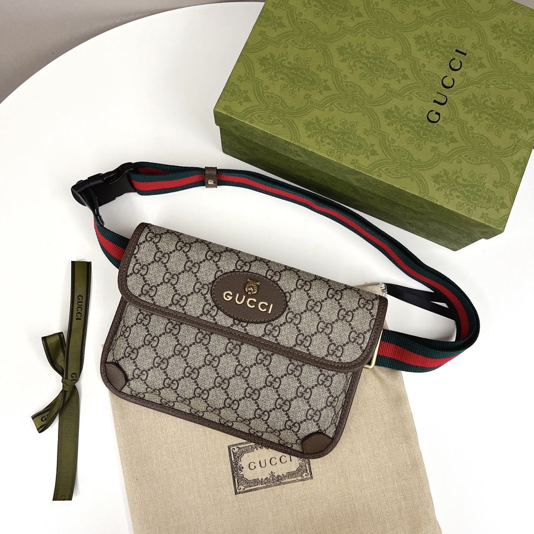 GUCCI 虎头腰包 💰190 独家高品质.男女通用款. 采用GG Supreme高级人造帆布+进口小牛皮包边制作. 规格: 24*16.3*3.5cm