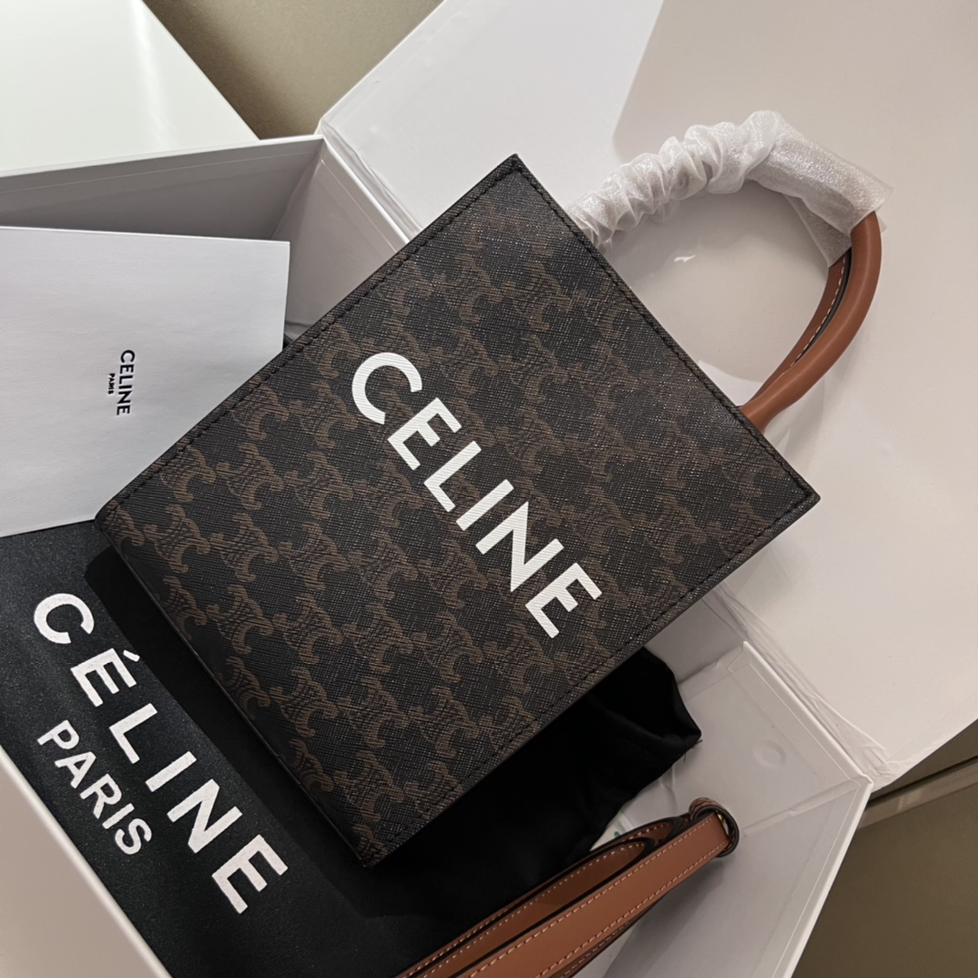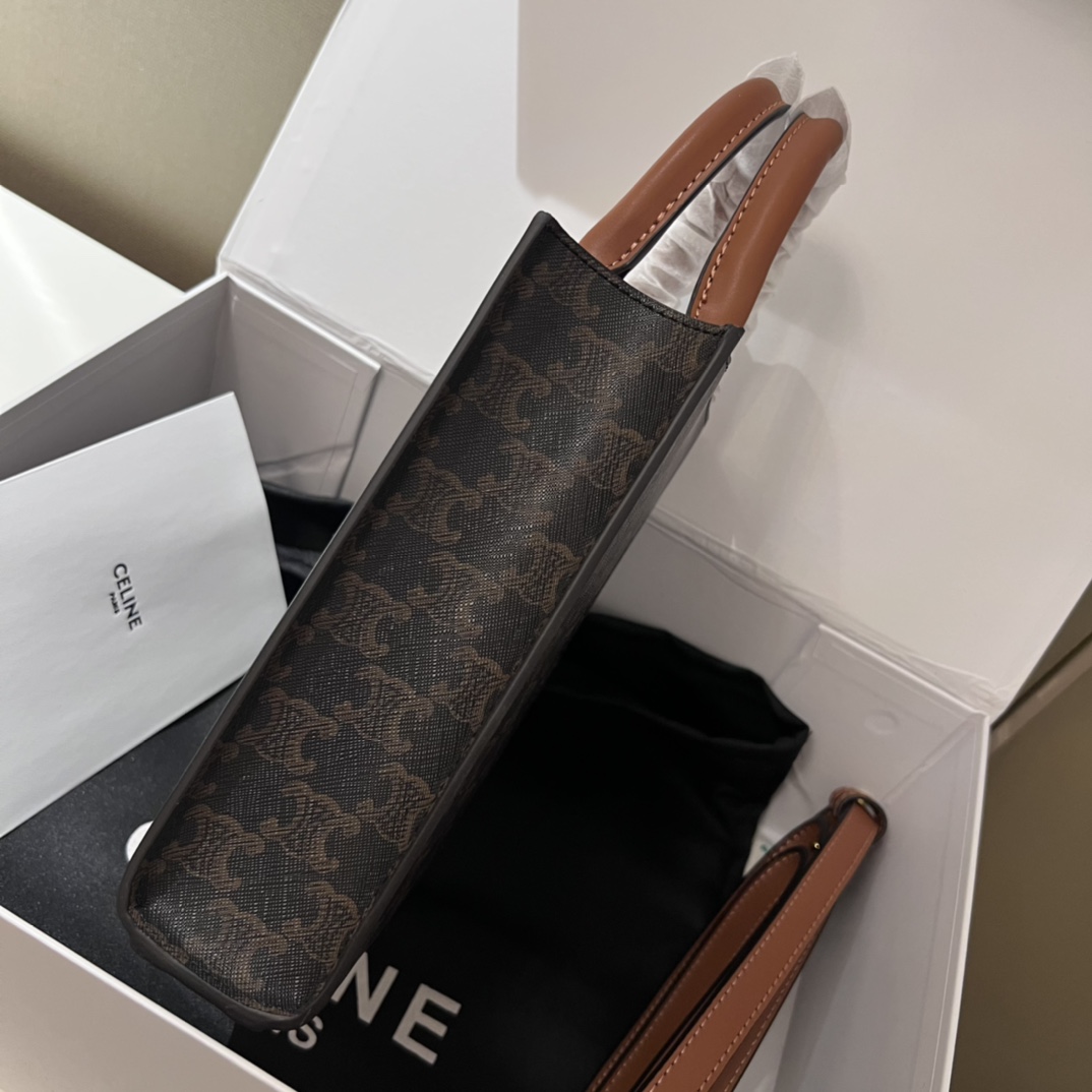 Celine赛琳迷你托特包💰210 原单版本. Cabas Triomphe凯旋门竖款手袋.经典满印老花.造型虽小但容量可欢.多种背法.小小的一只随便怎么搭配都好看.可手提和斜挎.手机钥匙纸巾都能放.重点这种老花纹路特别适合秋冬穿搭. 规格:21*17cm