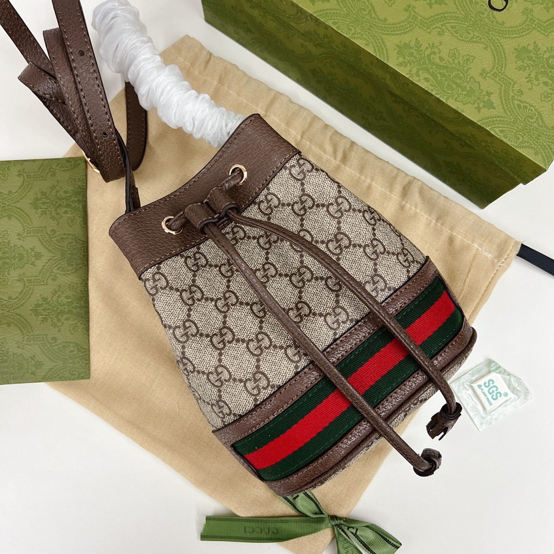 GUCCI抽绳水桶包💰210 高端版本. 沉浸在复古情怀之中.高级人造帆布材质. 点缀红绿织带等品牌最富特色的经典元素. 体现出对品牌马术本源的致敬.对版专柜绒布里衬. 采用头层牛皮包边. 头层牛皮肩带.原单品质. 规格:21*18cm(高*宽)