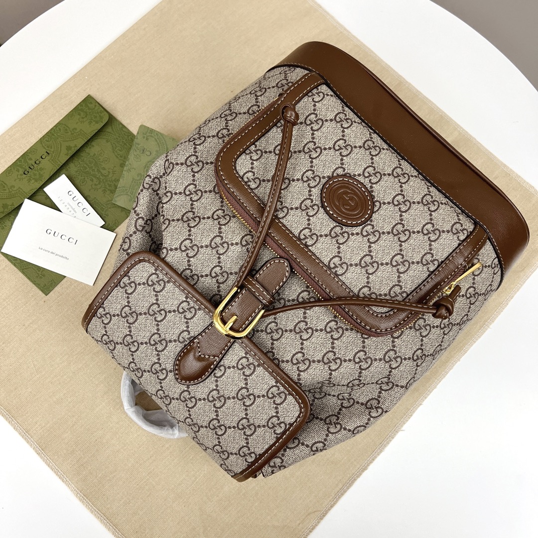 GUCCI2021秋冬新款Retro系列背包💰300 经典品牌元素.令单品散发出浓郁的复古格调.这款背包采用米色和乌木色GG Supreme帆布制作.饰以棕色皮革滚边.经典互扣式双G元素令整款设计散发出强烈的品牌魅力. 细节:米色和乌木色GG Supreme帆布环保材料.棕色皮革细节.棉麻衬里.互扣式双G椭圆形皮革标牌.内部拉链口袋. 规格:30*26.5*13cm