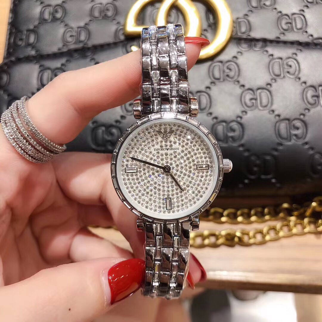 💰160 Armani阿玛尼 女士手表阿玛尼满天星的钻-采用施华洛世奇水钻,矿物质玻璃镜面,蝴蝶双按扣,表盘直径约32mm