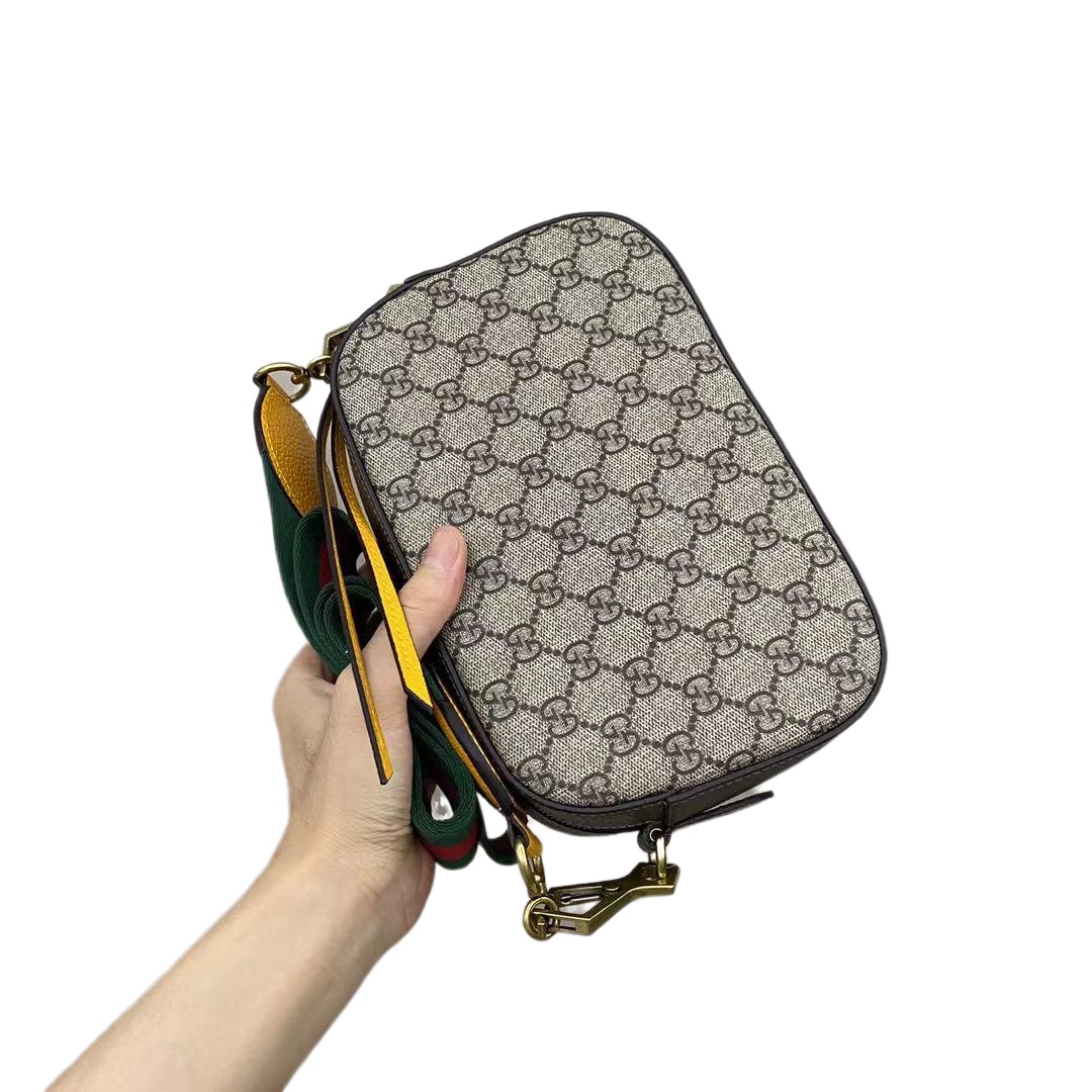 GUCCI虎头相机包 原单品质💰240 实物拍摄/所见即所得.高端版本. 这款vintage 相机包有着浓烈的复古风格.以乌木色拼亮黄色设计.配色真心好看.饰以精致小虎头五金.标志性的彩色肩带和古铜鱼嘴扣.配棉麻碎花里衬.每个细节都是设计师的用心之作.看似简单却不失质感.品质完美复刻. 规格:24*15*7.5cm