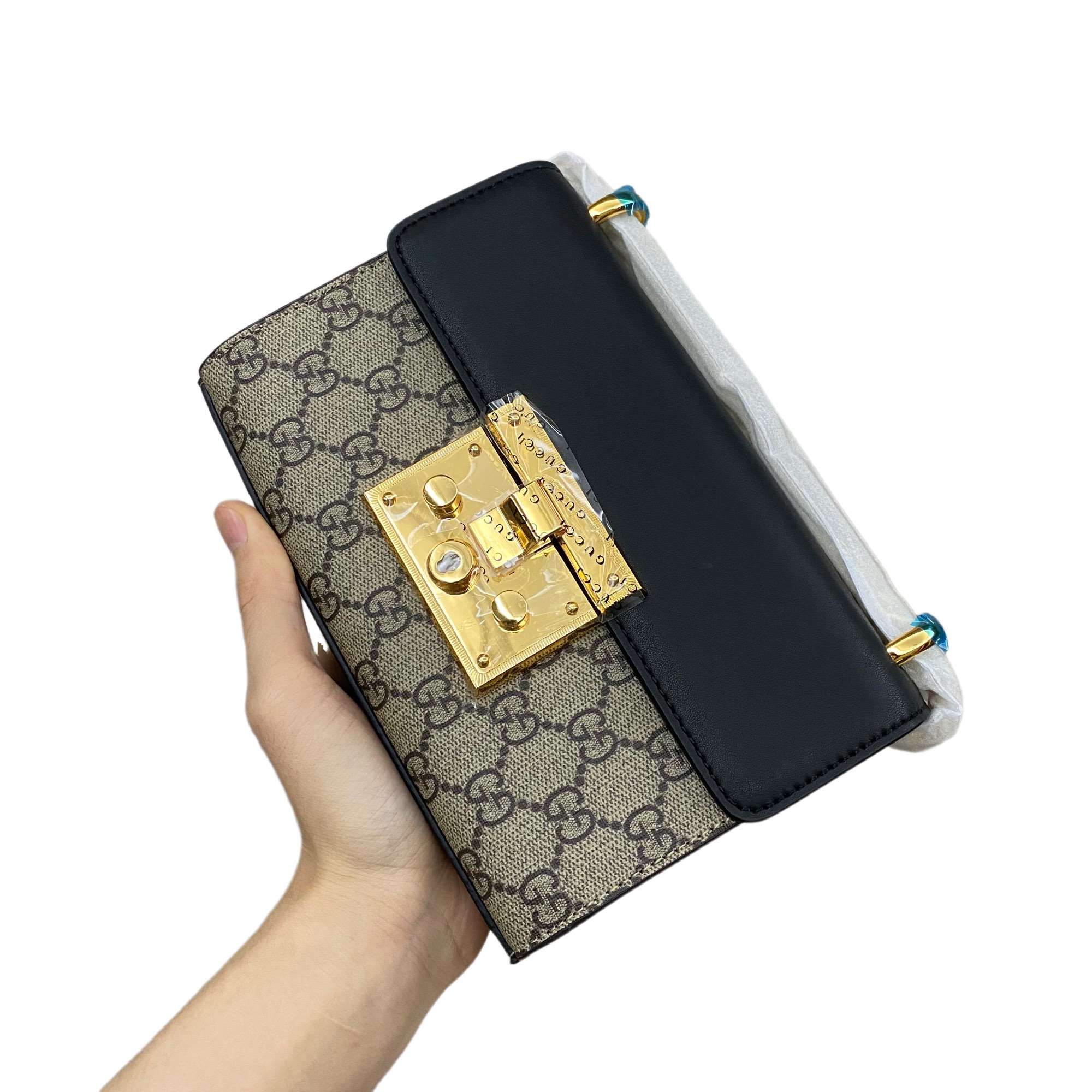 GUCCI Padlock链条包💰210 它有着独特的半硬朗个性和半性感气质.绝对是塑造不同风格的点睛之笔.它可以优雅高贵.可以高冷霸气.可以个性十足.也以轻松惬意.可以甜美妩媚.也可以性感华丽.这一切都让这款锁头包更具兼容性.抵挡不住的美走到哪里都是亮点. 规格:20*13*7cm