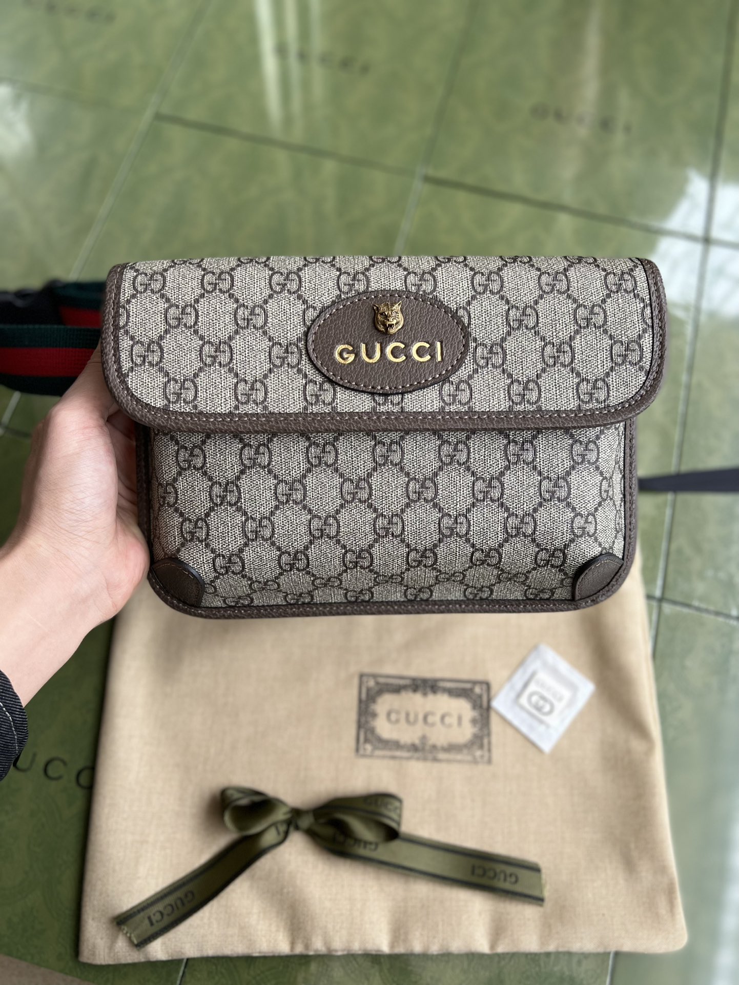 GUCCI 虎头腰包 现货💰190 独家高品质.男女通用款. 采用GG Supreme高级人造帆布制作. 规格: 24*16.3*3.5cm