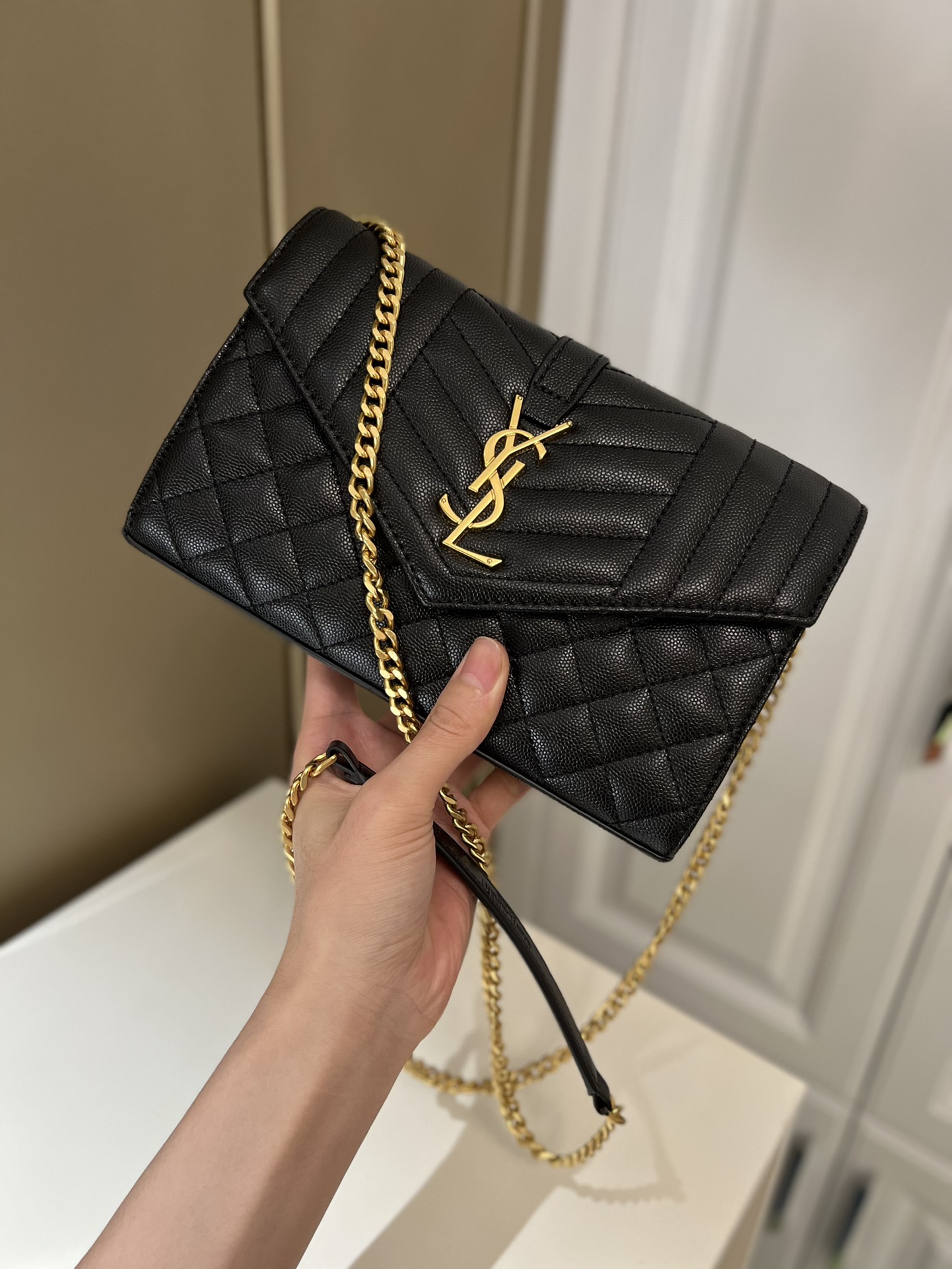 YSL 圣罗兰woc信封包🅿️210(新款) 整包采用原厂鱼子酱牛皮革制作.版型立体.手感舒适.可拆卸的肩带设计丰富了包包的多用性.肩带拆掉可直接当手包/晚宴包使用.内置多个卡位.实用到爆炸.平时出门带上手机和卡片.一个小包就可以带你轻松走遍天下. 规格:22*15cm