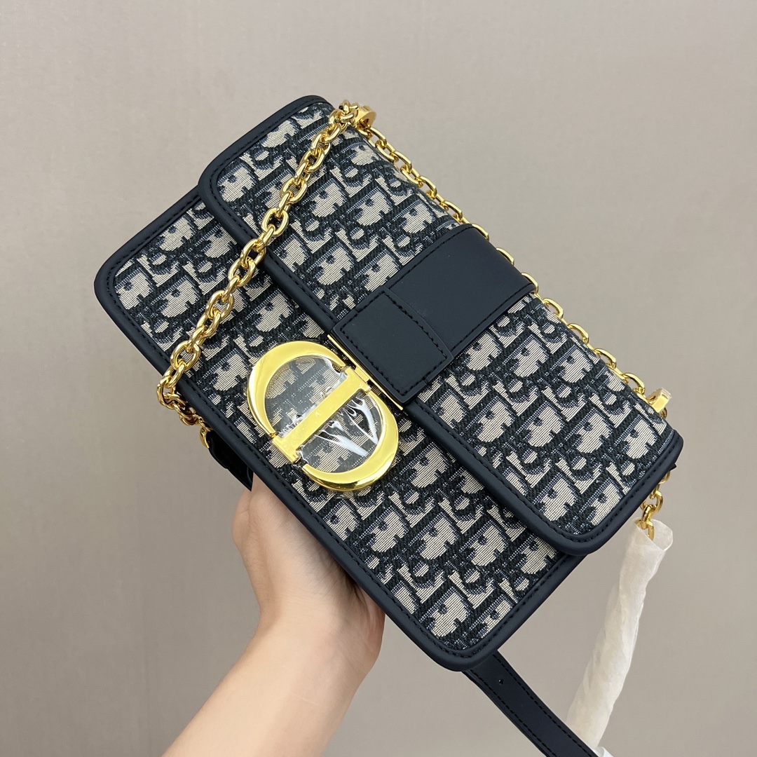 迪奥Dior蒙田包💰220(链条肩带款) 这款手袋采用 Oblique 印花精心装饰.打造优雅经典的造型.翻盖饰以复古金色饰面金属“CD”扣环.灵感源自 Christian Dior 香水瓶的封口.背面“30 Montaigne”压花标志等高雅的细节.突显时尚的设计. * 翻盖开合 * “CD”扣环 * 背面“30 Montaigne”压花标志 * 内部拉链口袋 * 后侧口袋 * 可手提、肩背或斜挎 规格:25*16.5* 8cm