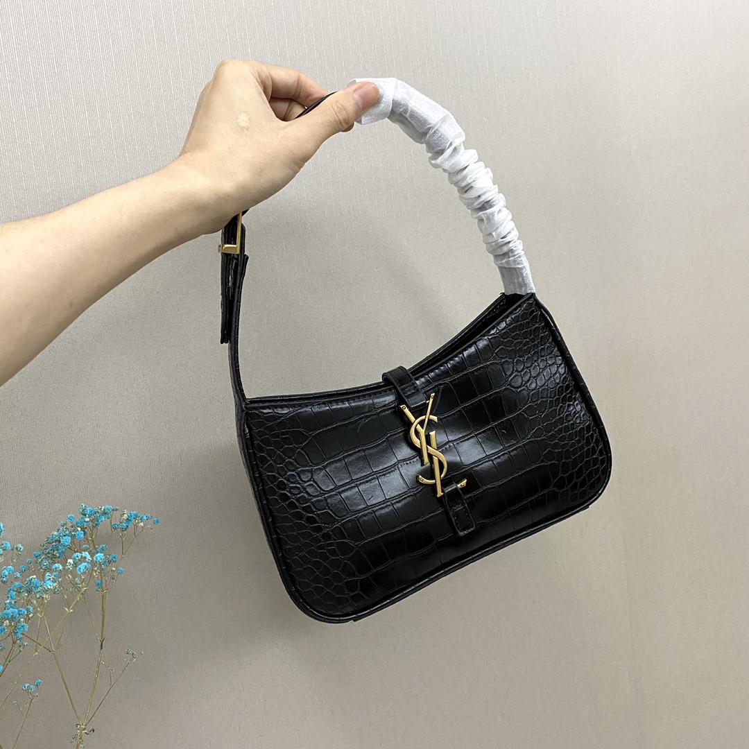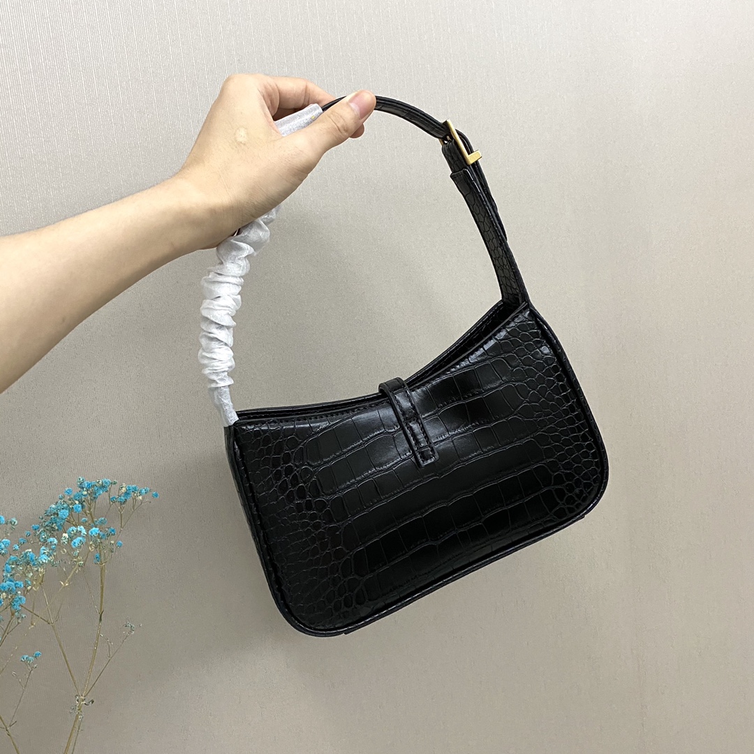 LSY圣罗兰腋下包🅿️190 流畅简洁的线条配上经典的YSL复古金口.百搭的黑色.可盐可甜.包身轻盈.容量也大.日常所需都能装下.既适合办公室时尚.也可以是漫步街头潮girl. 调节肩带.YSL金属钩扣开合设计. 内部一个主隔层和一个拉链袋. 规格:23*16*6.5cm