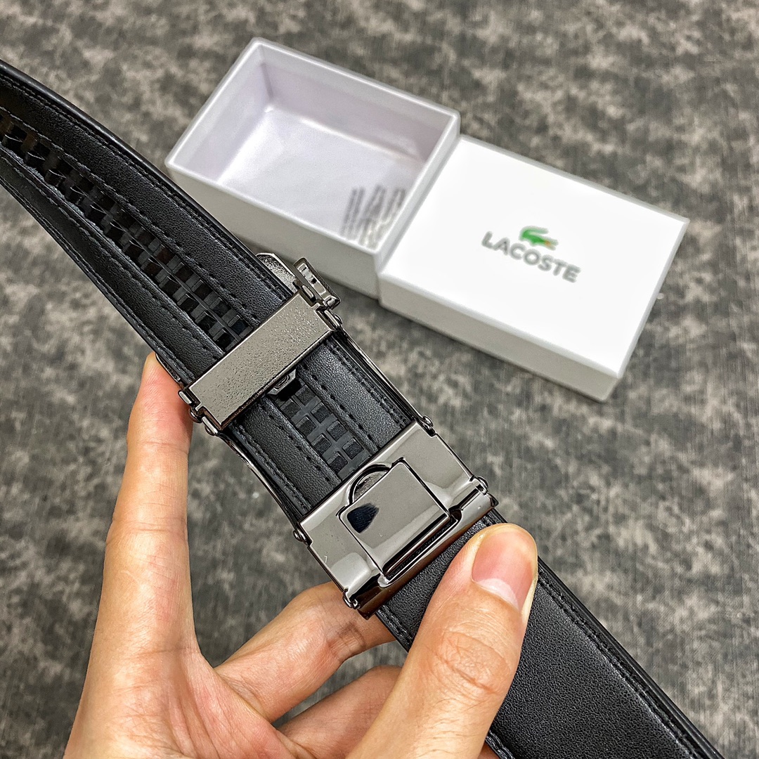 Lacoste法国鳄鱼自动扣皮带🅿️110 原单品质.扣头采用激光电镀拉丝工艺.镜面抛光.时尚大气的外观可商务也可休闲.耐磨防刮.自动扣设使用更省心..配专柜包装. 规格:1.15米长*3.8cm宽