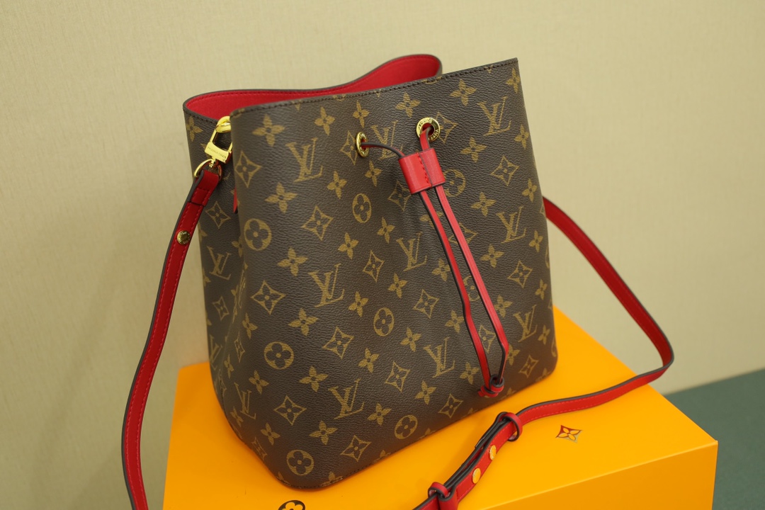 Lv红水桶 本地🅿️240 独家高端礼盒装. 升级后的Ⅳ水桶包品质更好质感版型正. 规格:26*25*16cm 诞生于1932年的 LV Noe系列是最古老的水桶包之一这种最初为装香槟酒瓶而设计的可爱形状.直被不同的设计师演绎到现在Noe以全新的Neonoe水桶包重回大家的视野可爱实用得不像话.而最最经典的老花款式.更是火爆至极.一度成为女星和时尚达人们的出街新宠.