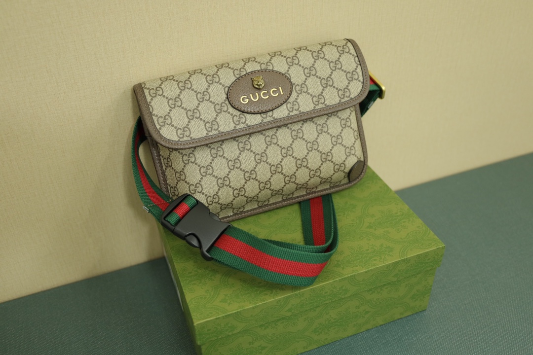GUCCI 虎头腰包插扣版 本地🅿️190 原单品质.男女通用款.采用GG Supreme高级人造帆布制作.配以复古风格设计.款式采用皮革滚边.可以缠腰佩戴.配以织带和搭扣确保安全. 规格: 24*16.3*3.5cm 原盒精装.