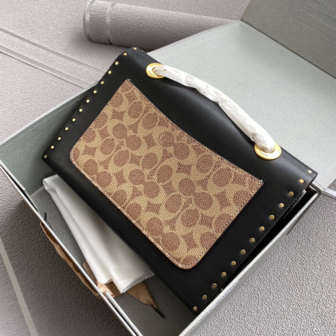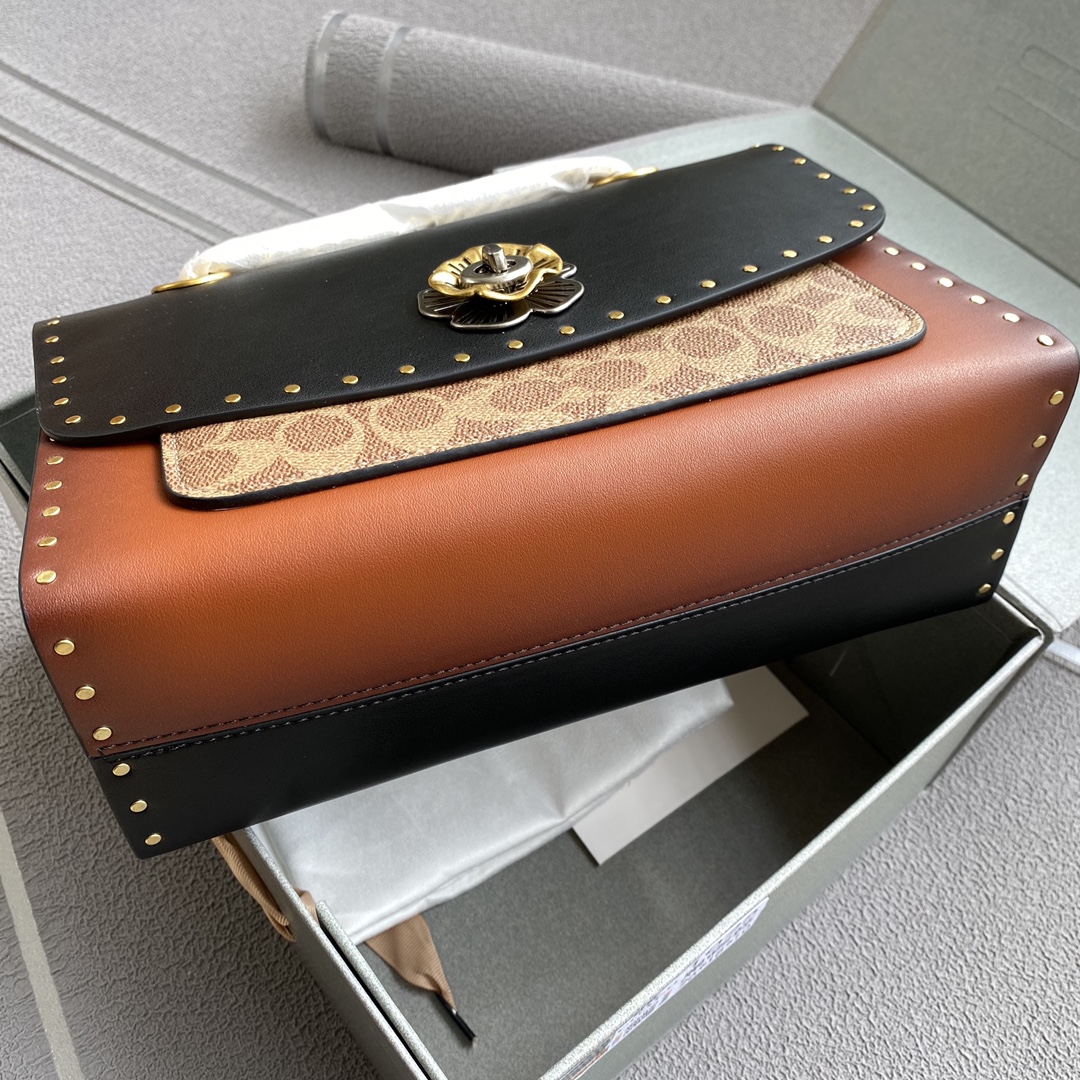 蔻驰新版山茶花/顶级原单 💰260 所有女生都想拥有的一款轻奢包包.工整有型.质地轻盈.工整而轻盈的手袋可胜任不同场合.将上城优雅与下城简约相融.包身采用光滑皮革和经典标志涂层帆布制作.配备茶玫瑰旋锁口.带有皮革链条带.即可作为长肩带.也可以变为两个短手柄.容量很大.百搭款.怎么背都好看哦~ 规格:26*17*10cm