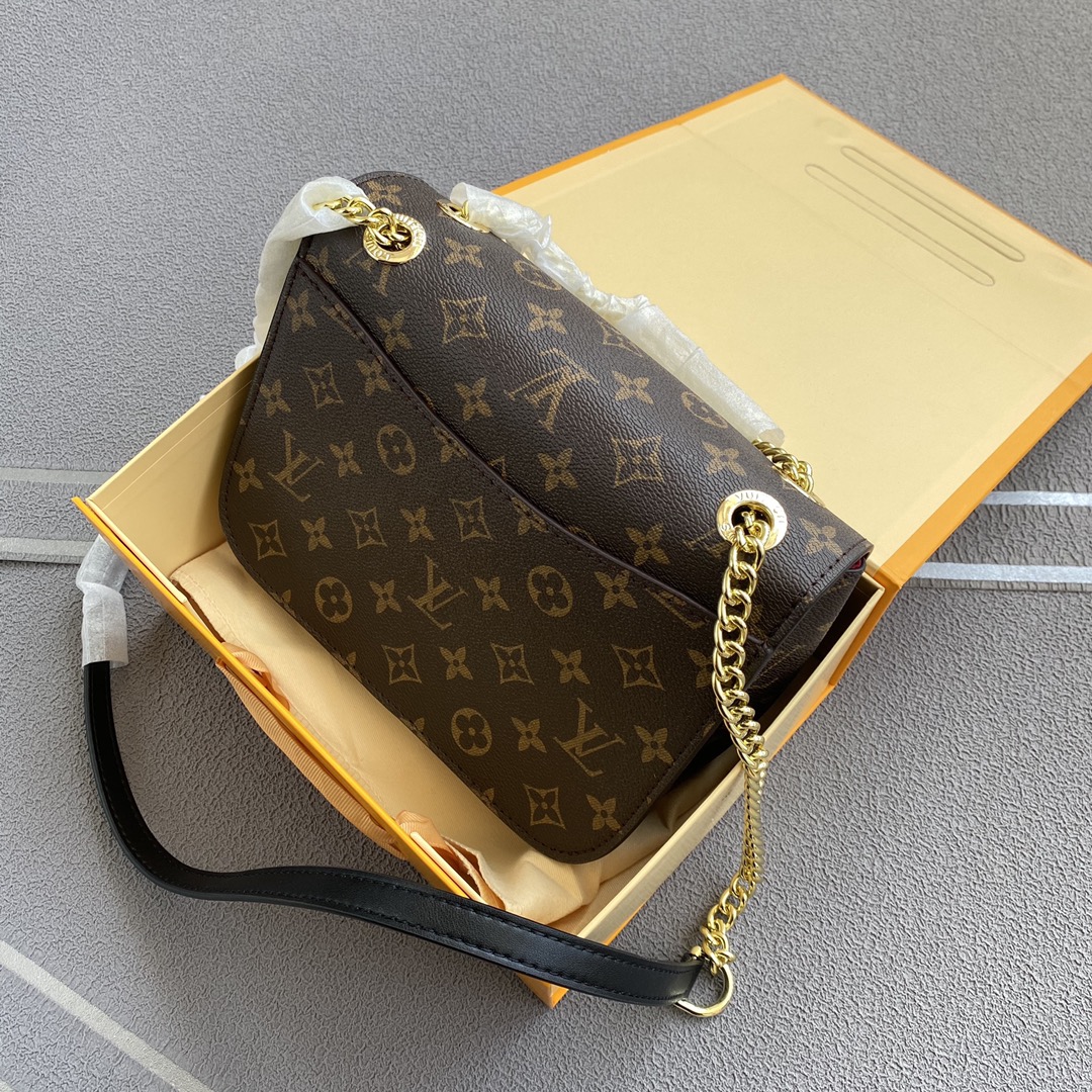 LV新款邮差Chain Bag 链条包 💰260 以 Monogram 帆布塑造玲珑构型.搭配树脂 LV 磁扣.于不经意间点明潮流先锋.前后外袋和内袋便于取放随身物品.安心出席昼夜场合. 详细特征 24 x 17 x 12 厘米 (长度 x 高 x 宽) Monogram 涂层帆布 超细纤维内衬 前袋 拉链内袋 后袋 链条:可滑动调整.不可拆卸. 链条半长:51.0 厘米