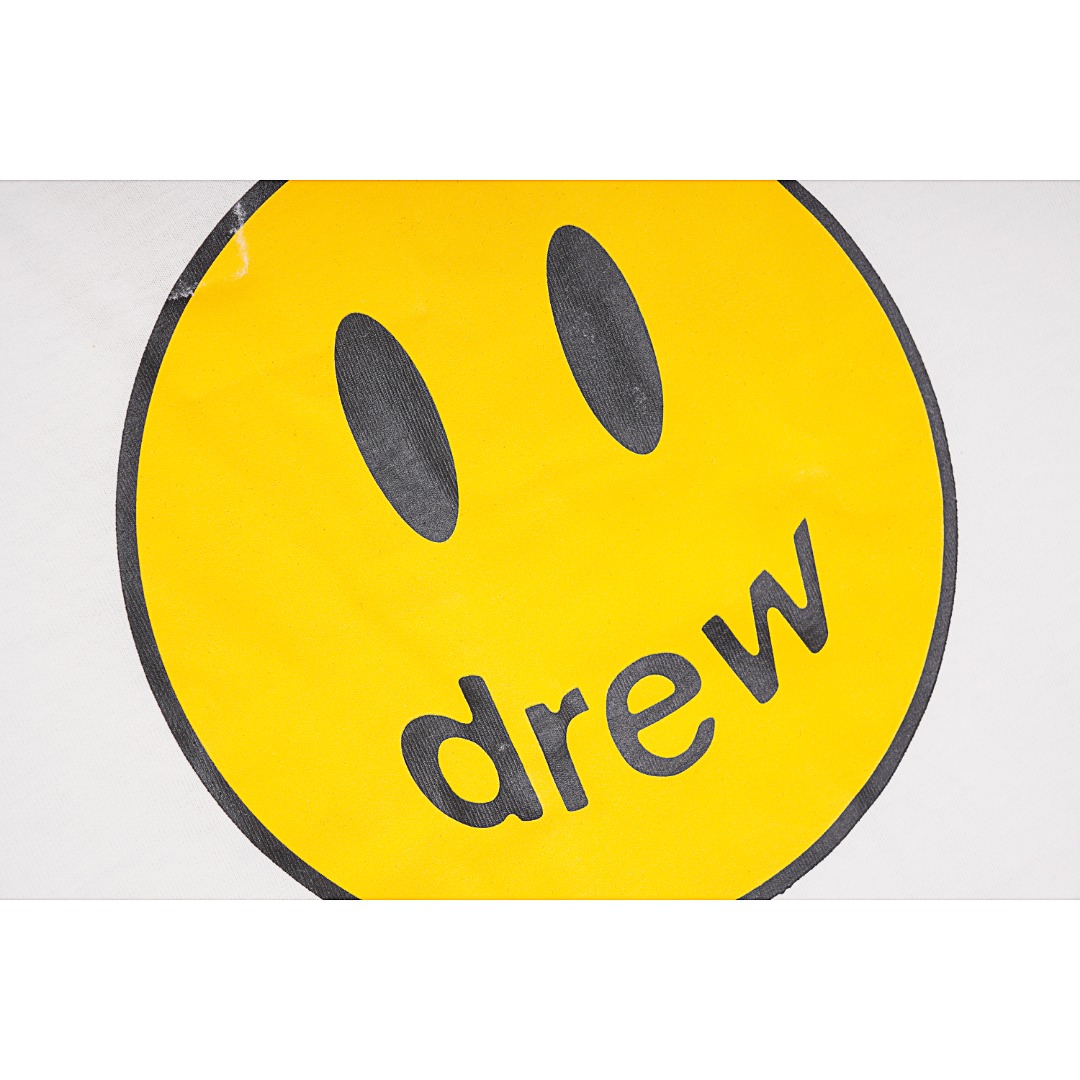 在 2018 年年初时 加拿大著名歌手贾斯汀比伯Justin bieber以自己的中间名 “Drew” 为来源 成立个人品牌Drew House 正式推出了第一个服装系列 面料定织定染21支210克单面精梳棉+32支1 x 1双纱螺纹 经洗水预缩处理 手感柔软 缩水率低 印花采用进口胶浆印花 全自动椭圆机出品 边缘细腻 质感好 经高温烘炉 印花牢固度好 不易裂开