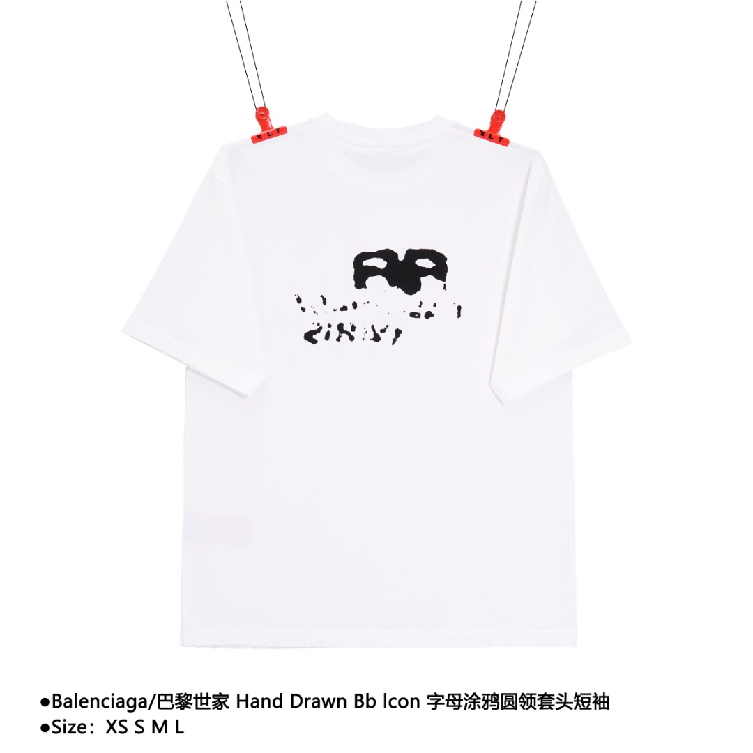 Balenciaga/巴黎世家 Hand Drawn Bb lcon 字母涂鸦圆领套头短袖