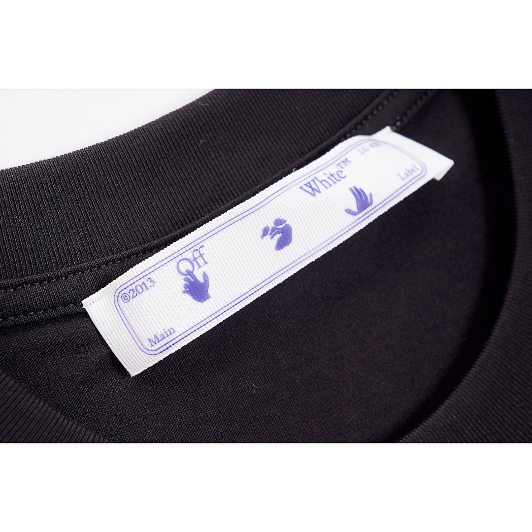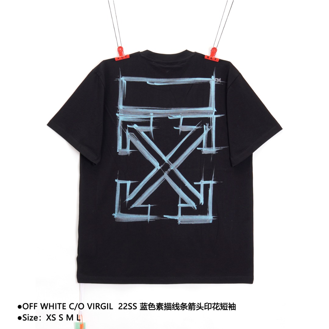 💰150 OFF WHITE C/O VIRGIL 22SS 蓝色素描线条箭头印花短袖 Size:XS S M L 所有面料以及螺纹均为订织定染 所有面料颜色均经过色卡比对定染面料 无任何色差 采用220G克重 100棉汗布 汗布:一种薄型针织物(就是平常全面短袖的面料) 因其吸湿性强在经编货纬编针织机上用 平针、集圈、螺纹、提花等组织织编结成单面或者双面织物前片3套版 后背12套网版 160网目面料220克重 修改了半个月共计20版 印花采用日资MIMAKI印花机作业 不起边无毛边 喷绘烫画热压冷撕 透布纹防刮擦熨烫作业 印花不起雾 磁带印花重合颜色深浅均有差别 洗标也是按照原版的字体找公司订做辅料部分依旧采用OFFWHITE 21S/S全线正确辅料 长方形梭织领标设计 把之前的立体硅胶手感字体取消改为全梭织领标领标部分可以看到荧光色字体 五联硅胶吊牌 三联水洗标以及斑马线包装线依旧 款式编号:NN-5605605616