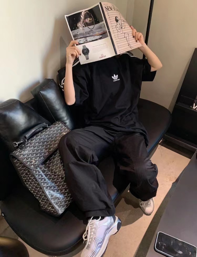 上身素材# Balenciaga/巴黎世家 X Adidas 23SS三叶草刺绣短袖T恤