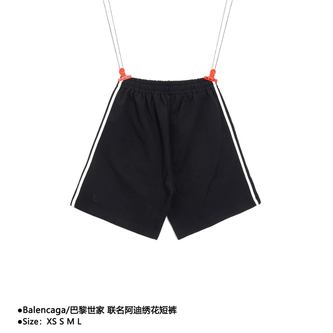 💰160 Balencaga/巴黎世家 联名阿迪绣花短裤 Size:XS S M L 23早春走秀款两个品牌经典元素融合设计,侧边织带拼接立体刺绣 logo 宽松廓形,面料采用纯棉毛圈厚实面料,上身效果宽松休闲,三标齐全 ,男女同款 款式编号:WJ-5605656017