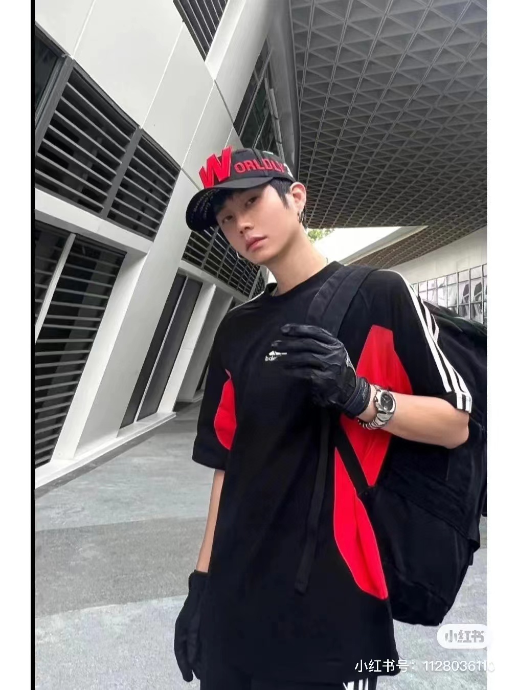 上身素材# Balenciaga/巴黎世家 X Adidas 联名款拼红色短袖T恤