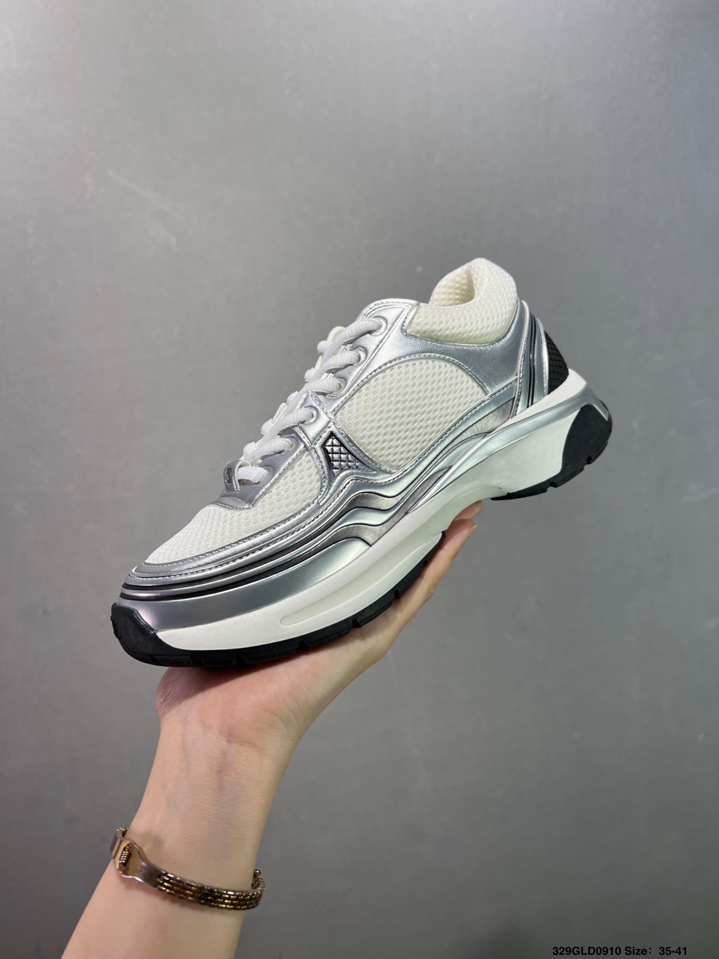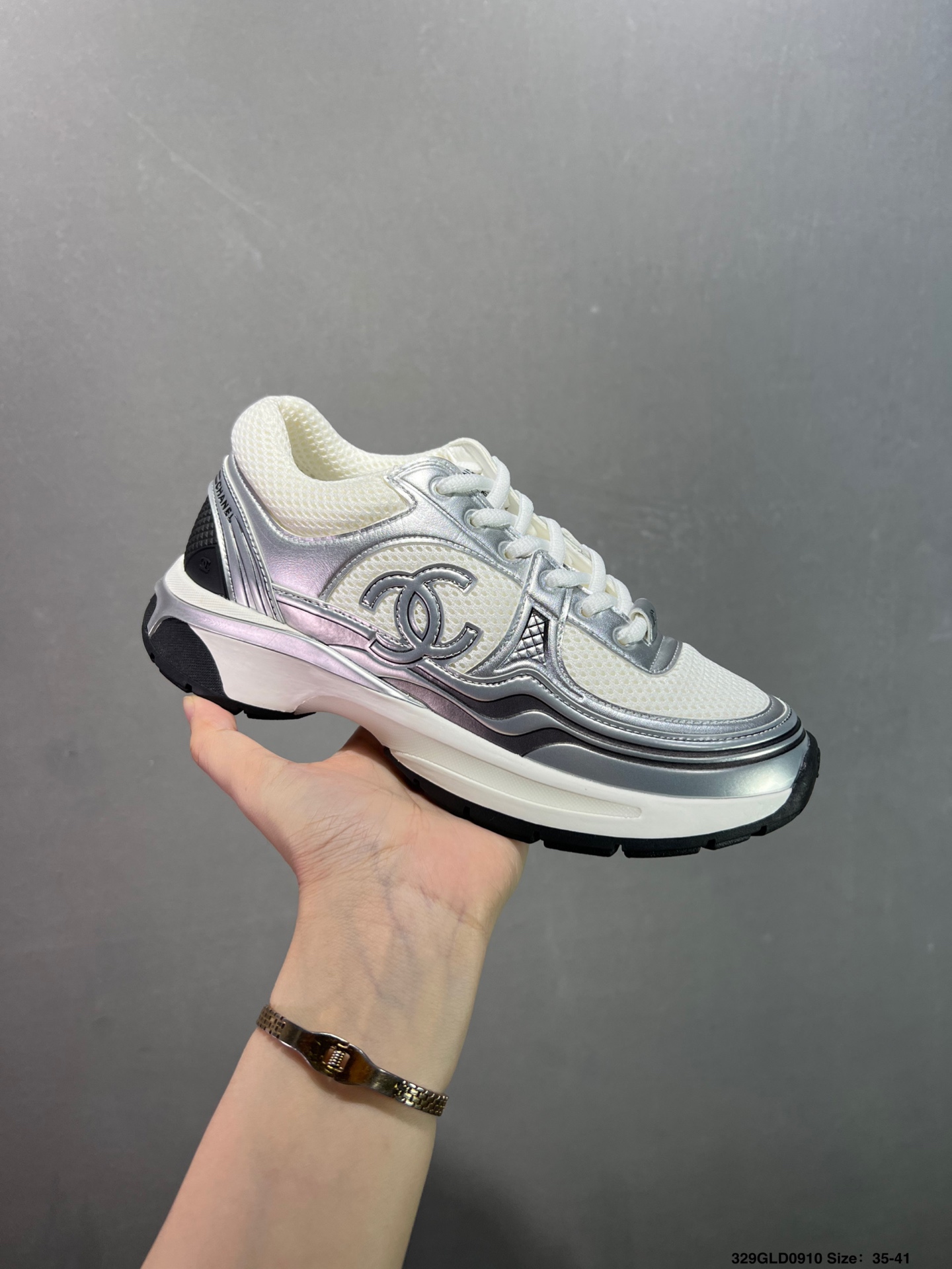 💰280 公司级✅Chanel香奈儿 25ss 春夏新款专柜顶级休闲款运动鞋 这款经典设计 鞋面多种工艺电绣的风格;大底却时尚运动;不平凡的拥入了多种配色元素多元化混搭非常好看百搭,休闲,时尚,运动,户外都能兼顾 鞋面采用: 原版进口高丝光牛反绒+进口混种羊皮 内里采用: 原版进口透气网 大底:原版独家开模+TPU组合大底 尺码:35-40 编码:329GLD0910