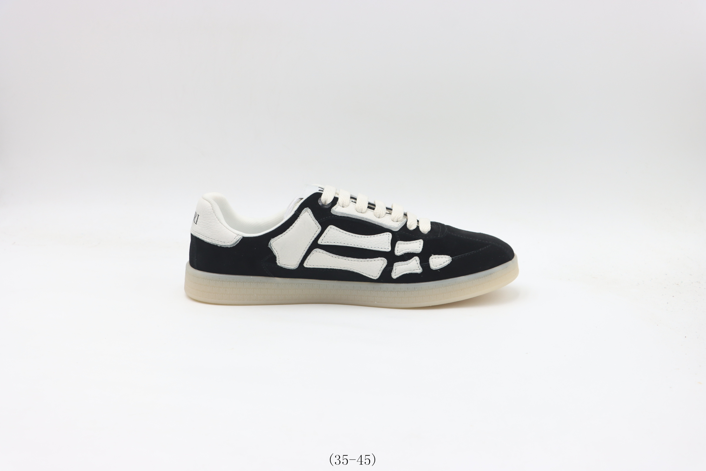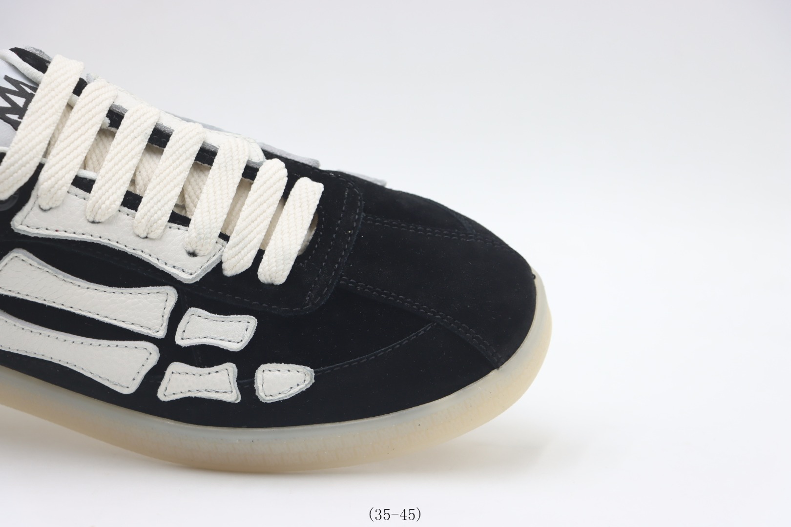 💰400 【广东版 AMIRI系列】AMIRI埃米尔休闲板鞋 黑白 货号:尺码:35 36 37 38 39 40 41 42 43 44 45 ❗❗❗ AMIRI埃米尔 Pacifc Bones 绒面革 圆头系带 低帮 板鞋 选用优质材料 精细制作 经典设计 展现优雅气质 舒适脚感 适合各种场合此款拥有舒适的鞋面 具有很好的延展性后跟采用柔软材质能够舒适贴合脚踝穿着轻松 让您在平时生活中有舒适和轻松的体验